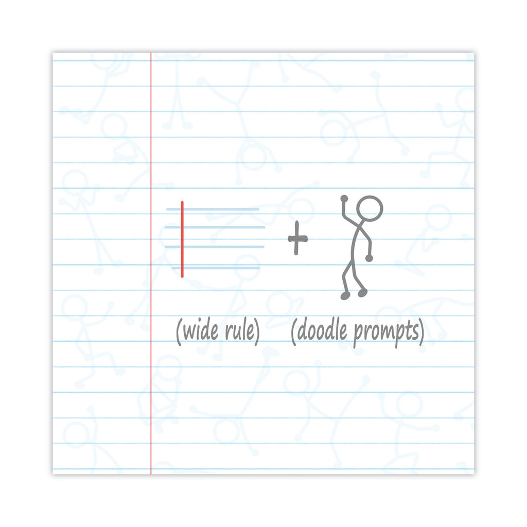 - Doodle prompts are lightly printed stick figures throughout the page to encourage doodling rather than something counterproductive.