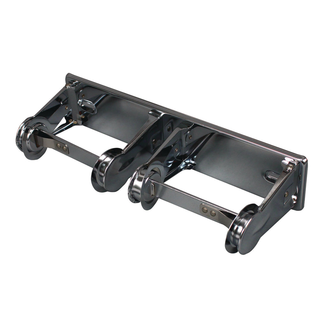 Self-locking mechanism prevents accidental release. The 4.5" profile from the wall minimizes space needed for installation and operation. 18-gauge steel with chrome finish makes this dispenser extremely durable.