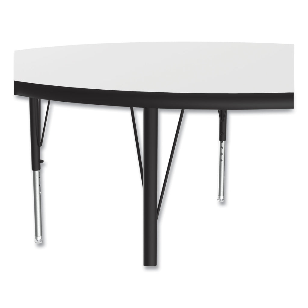 Encourage student collaboration and creativity with a dry erase markerboard tabletop. Sturdy, ultra-durable high-density fiberboard core with built-in backer sheets and scratch- and stain-resistant, high pressure laminate surface. Height-adjustable steel legs with hairpin braces—legs adjust in 1" increments. Included speed-wrench for fast and easy adjustments. Ships on a pallet to accommodate commercial addresses with loading docks.