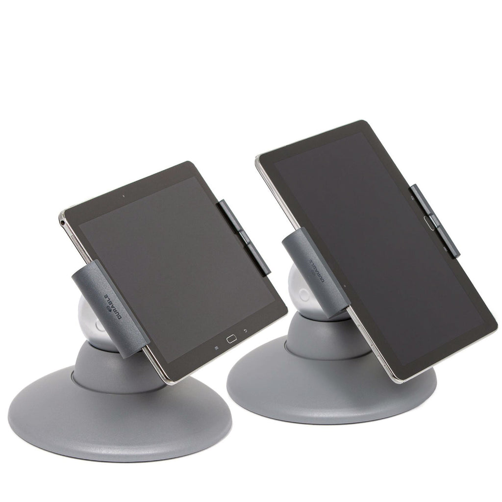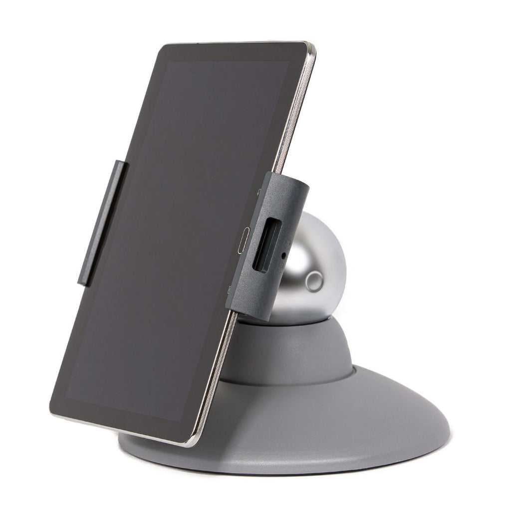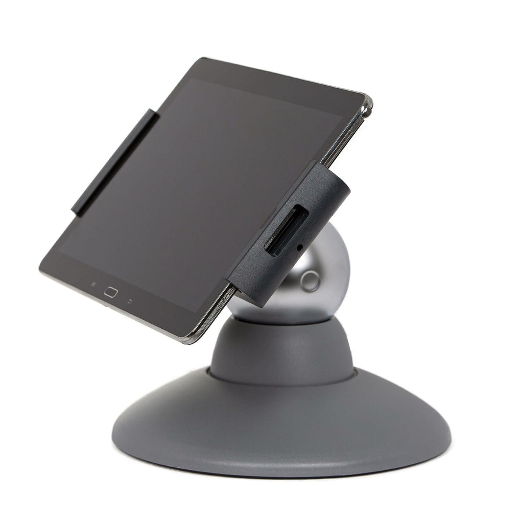 This desktop tablet holder is perfect for personal and professional use in offices, kitchens, at reception desks, and in sales and exhibition rooms securely. With its elegant surfaces and excellent stability, this tablet holder is also an ideal tool for presentations. The tablet holder is compatible with 7" to 13" tablets and features an opening in the support arm allows for easy connection to power supply. Designed for a seamless experience, the holder offers an adjustable reading angle between 25° and 70° and 360° rotation that allows you to choose between portrait and landscape mode depending on your preference.