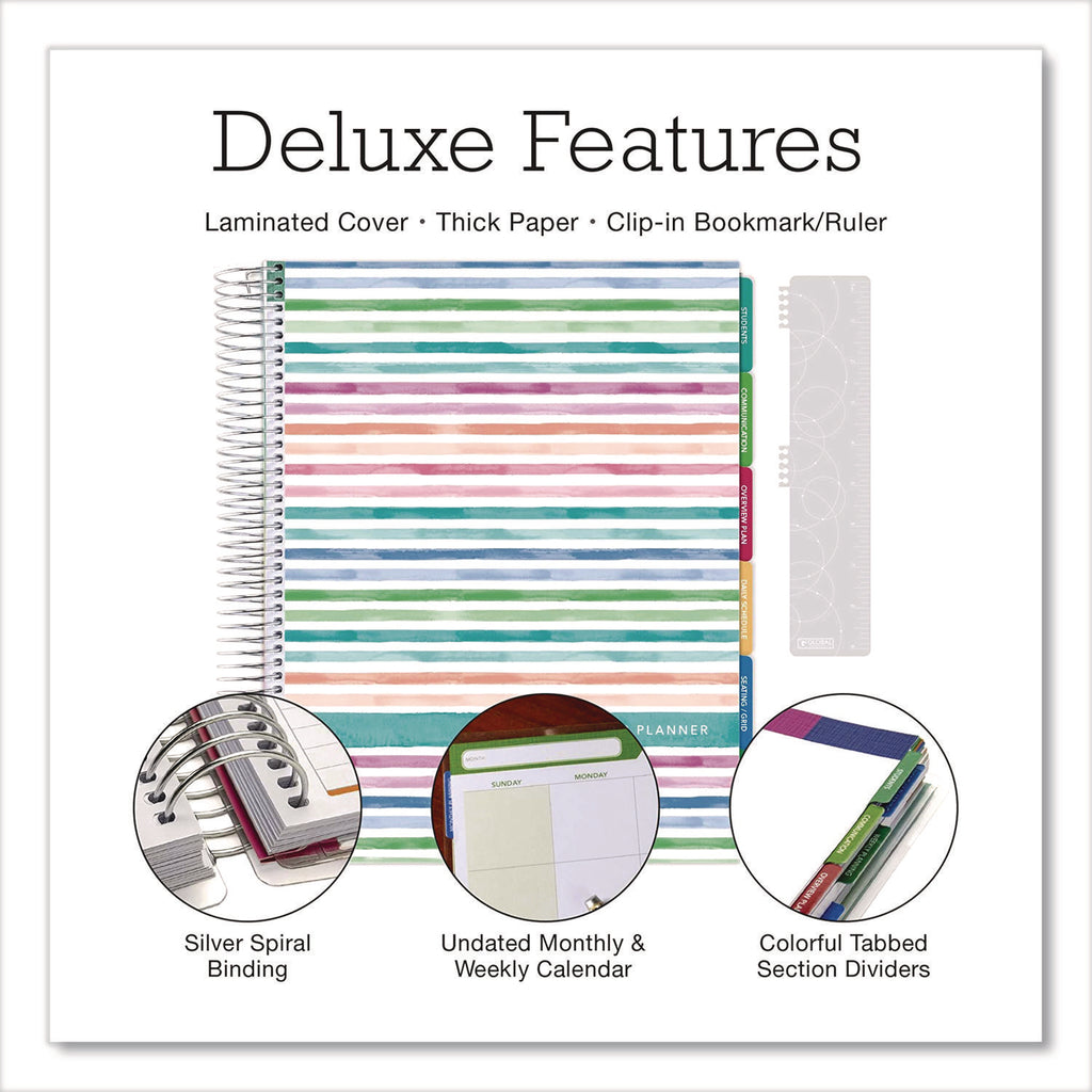 Flexible weekly planning section features five days across and seven periods down, and the tabbed monthly section delivers standard, one-month per two-page spreads. In the back of the book, a range of additional tools help busy teachers stay on track. Undated format spans a full 52 weeks.