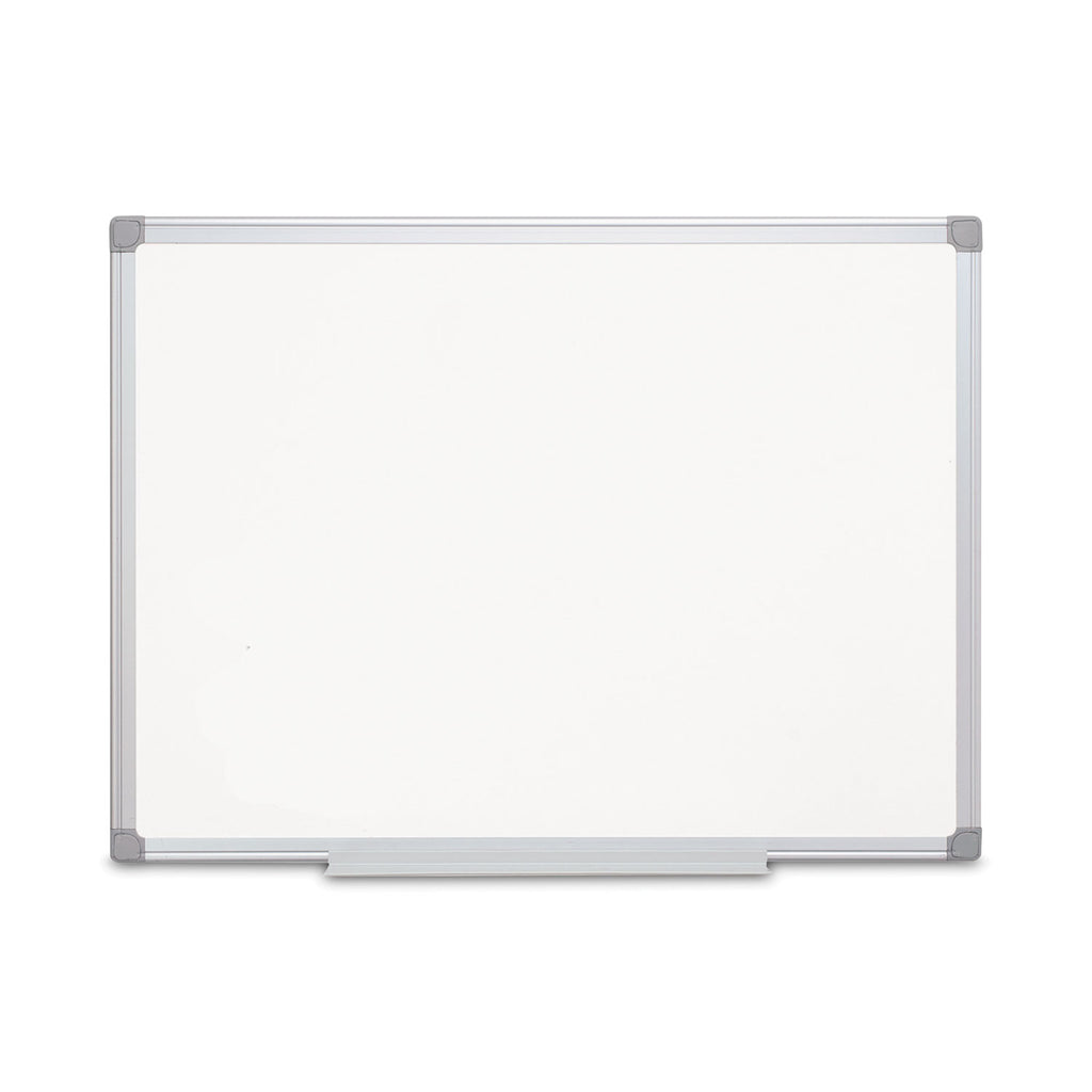 High-quality, magnetic porcelain surface resists staining, ghosting and scratches, while cleaning easily, making it ideal for heavy, frequent use. Sturdy aluminum frame features the four-corner system for easy wall mounting. Supports both vertical and horizontal orientations.