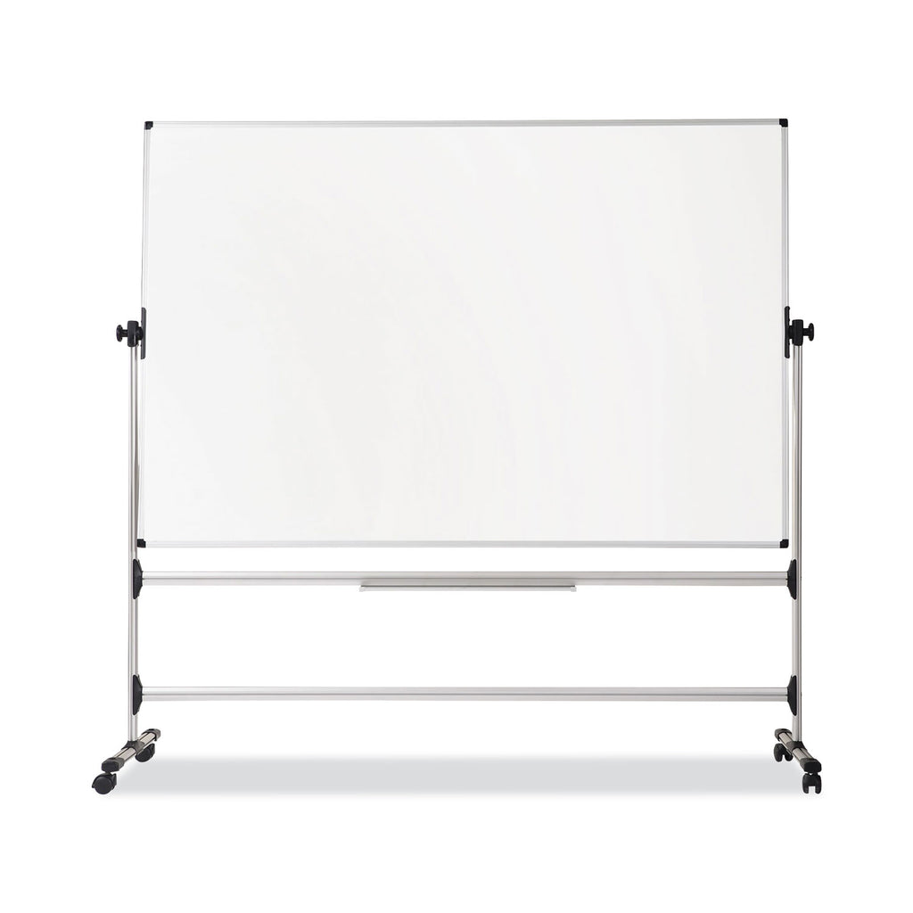 Durable and versatile dry erase boards are perfect for classrooms and all training environments. Silver Easy Clean surface resists ghosting. Dual surfaces revolve easily, providing you with additional writing space. Portable with easy glide locking casters for full mobility.