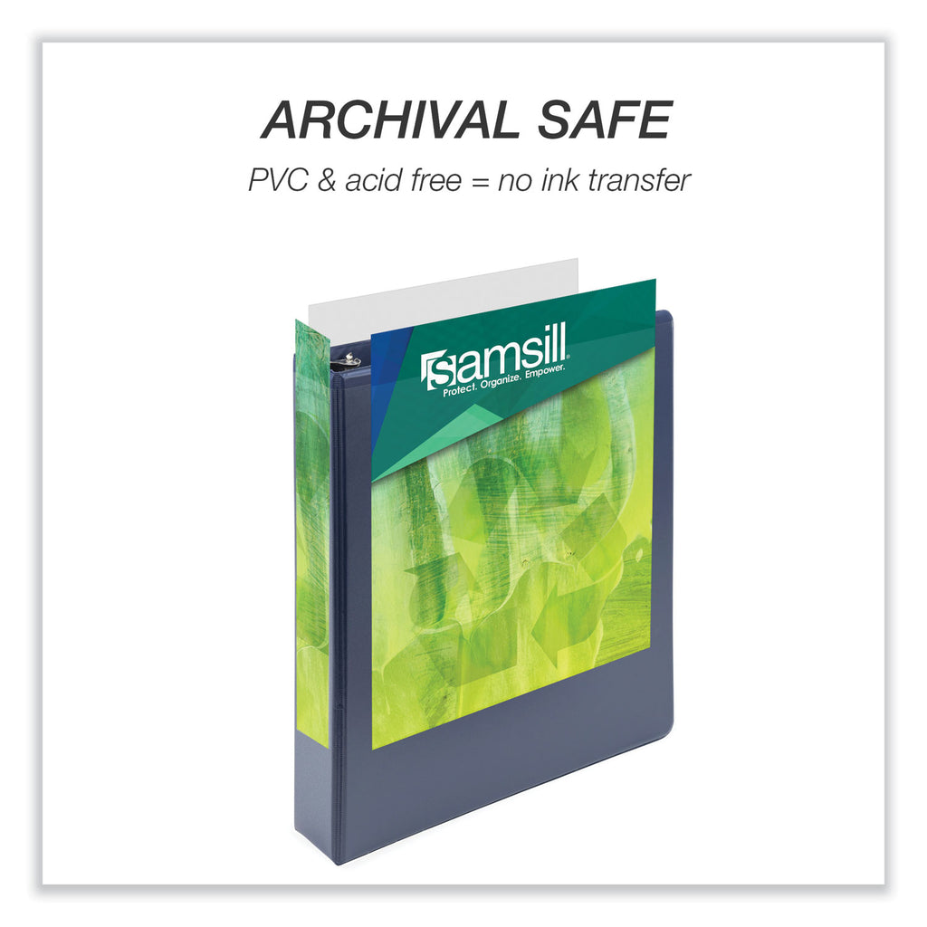 Three ring binders are a must have organization tool for back to school, offices and homes. The biobased presentation view binders are not only well-constructed for holding paper but also have both biobased and recycled properties that make them a great sustainability solution. These USDA certified binders are made with a percentage of biobased material and come with a cover made of plant based renewable plastic. This 3-ring binder has durable chipboard made of fully recycled material. Biobased content is carefully tested using ASTM D-6866 standards. The first and only biobased presentation office and school binder on the market can be used for storing documents and loose items with considerable ease for the perfect counter organizer. This d-ring binder holds three-hole-punched paper (sheet size: 8.5 x 11). The rings are sturdy to withstand years of use and easy to open and close. It features two clear inside horizontal pockets for additional storage and organization of loose documents and non-punched papers. Non-stick materials are used for making this product, which prevents transfer of ink or lifting copy when materials are inserted in the cover or placed inside. A clear overlay on the front, back, and spine of the binder gives full control and flexibility over customization of presentations, organizational projects, office reports, class projects, and more.