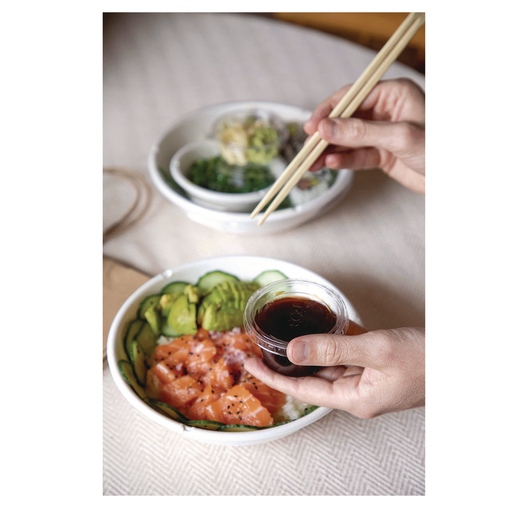 Durable Portion Cups made from PLA, the perfect solution for your food service needs. These cups are crafted from 100% renewable plant-based materials, offering a sustainable alternative to traditional plastic. Ideal for sauces, dressings, and condiments, our PLA portion cups provide exceptional strength and reliability. Fully compostable in commercial facilities, they help reduce plastic waste. An excellent choice for cafes and cafeterias with grab 'n go service. With our PLA portion cups, you can serve your customers with confidence.