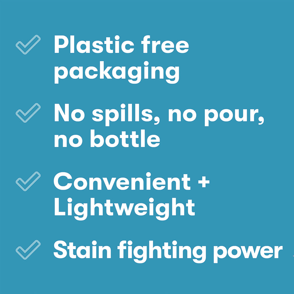 A solid new way to do your laundry. Designed for both homes and businesses, these ECOS liquidless laundry detergent sheets offer a plastic-free, lightweight, mess-free alternative that makes sustainable living a breeze. Our laundry detergent fights tough stains and odors with plant-powered cleaners and enzymes packed into every sheet. Say goodbye to sticky spills and hoisting heavy jugs, and elevate your laundry experience with ECOS the sustainable, convenient, and highly effective solution you've been searching for! 100% plastic free packaging reduces plastic waste, contributing to a sustainable future for both homes and businesses. Not tested on animals.