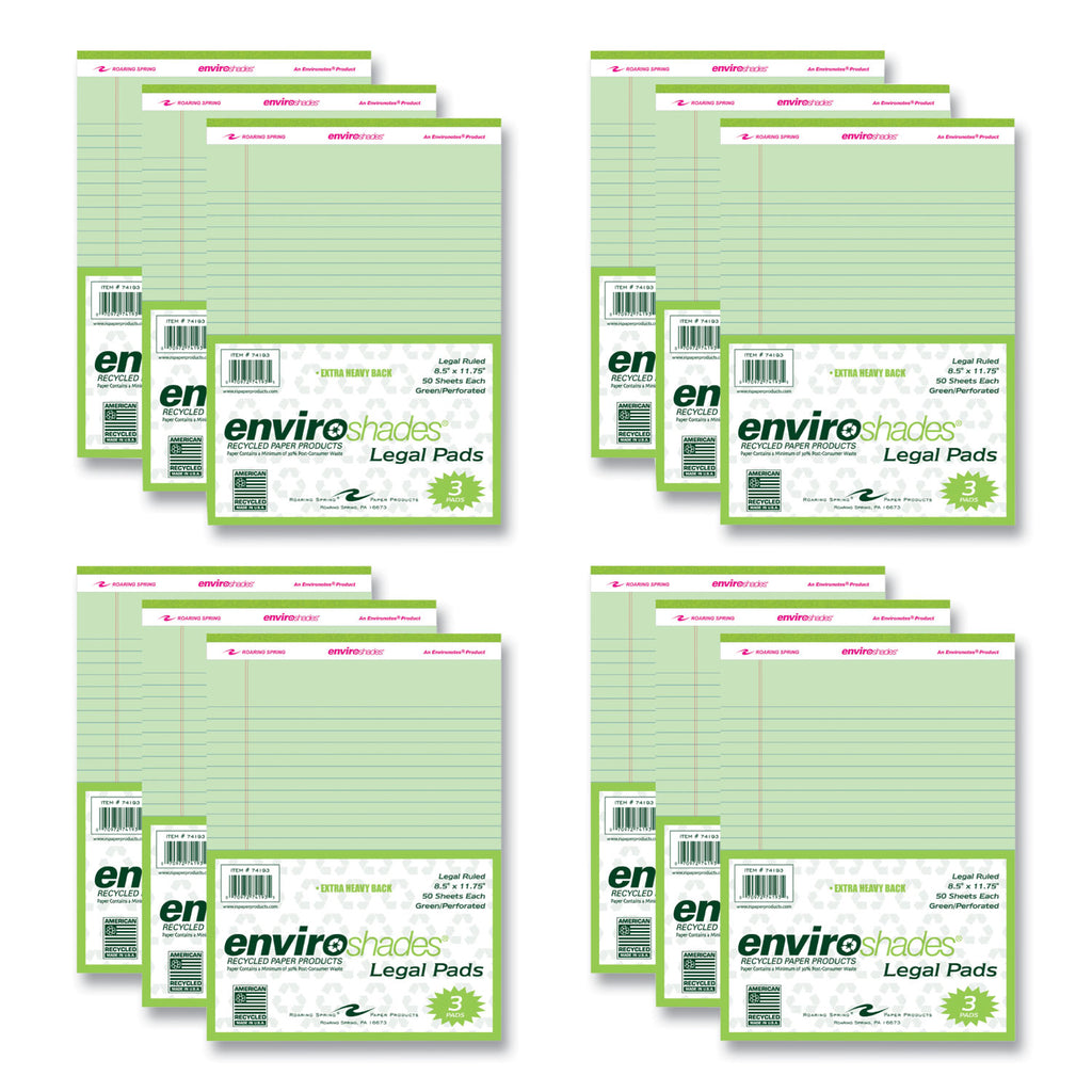 Smooth, 15# writing paper has legal ruled blue lines and double red margin lines. Sheets are micro-perforated for EZ removal. Paper is recycled. Stapled and taped construction.