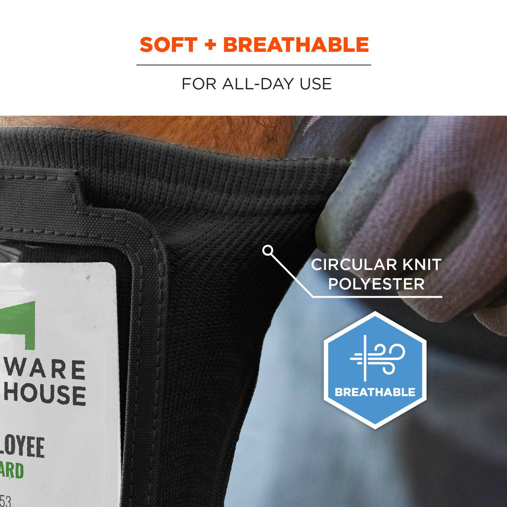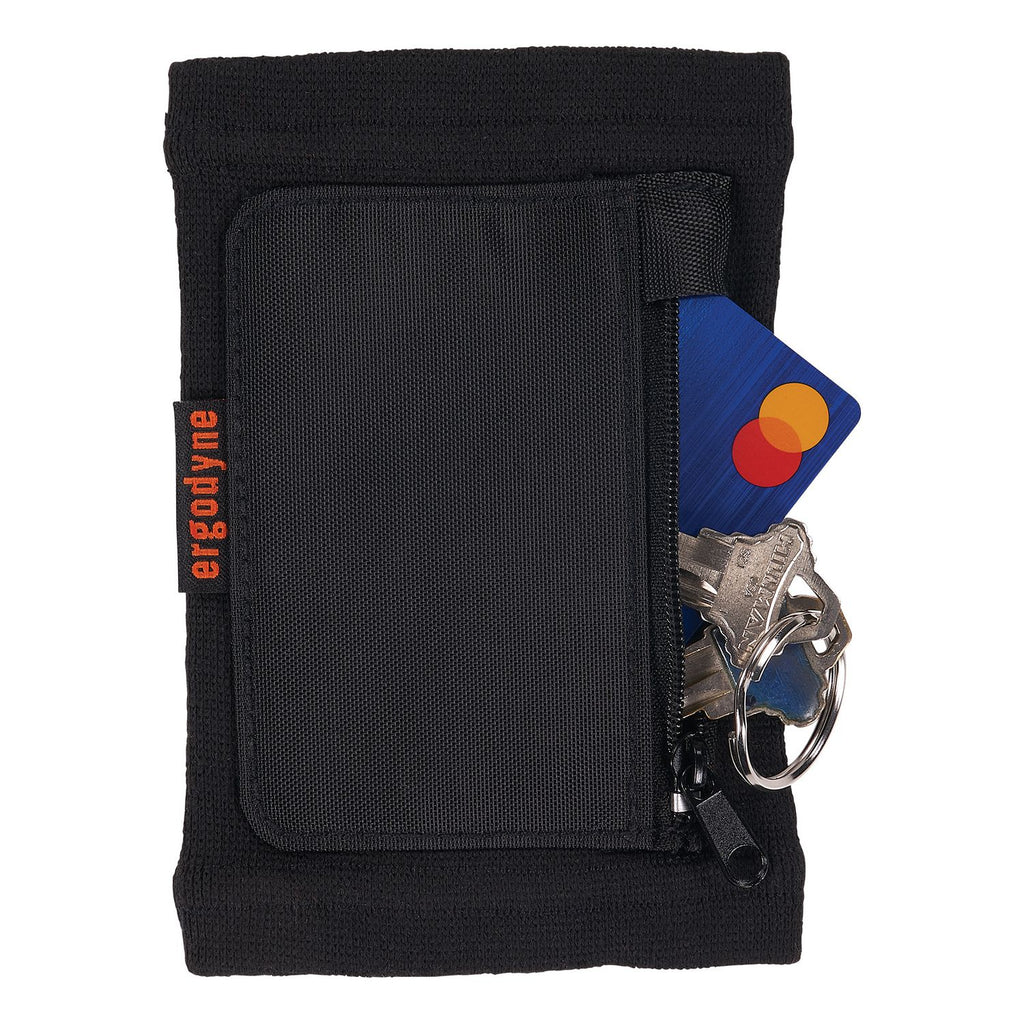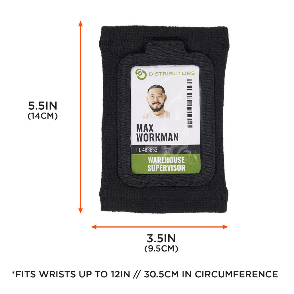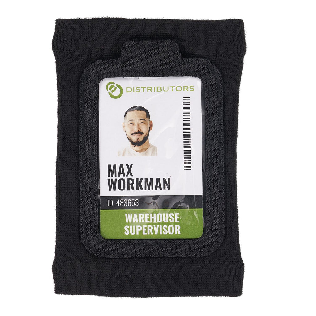 This wrist ID and badge holder is designed for easy access and prevention of lost IDs and badges. A soft and breathable circular knit polyester material stretches to fit a range of wrist sizes, while a small pocket with zipper closure keeps small items secure.