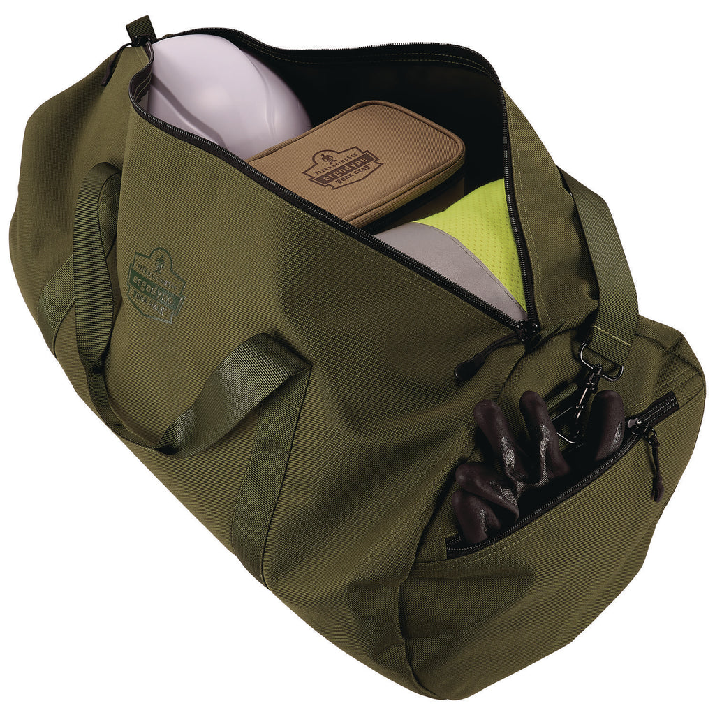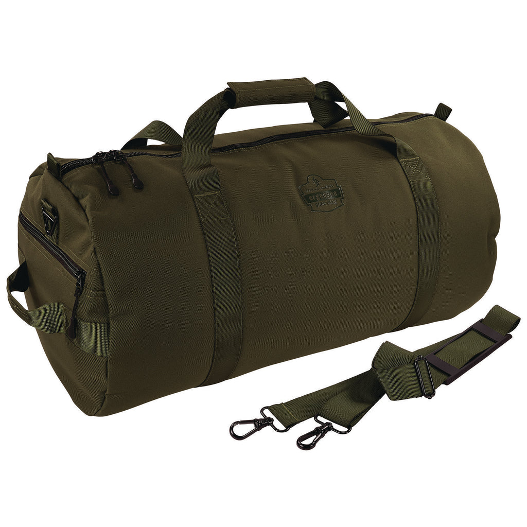 The Arsenal 5020P Standard Gear Duffel Bag is easy to carry and helps organize everything you need for the workday or the weekend. Whether you use it as a way to store your equipment on the job, a hunting bag to trek your gear through the woods, or as a carry-on duffel bag while traveling, you can rely on this utility duffel bag to house and protect your valuables. This lightweight, yet super durable gear bag is made with 600D polyester material to withstand wear and tear for long-lasting performance. Keep your essentials clean and dry with the reinforced water-resistant backing. Heavy-duty ribbed webbing handles and the adjustable padded shoulder straps. A large open main compartment fits all your gear with easy loading and unloading, so nothing is left behind. There are two accessory pockets with zippers on each side to hold smaller items.