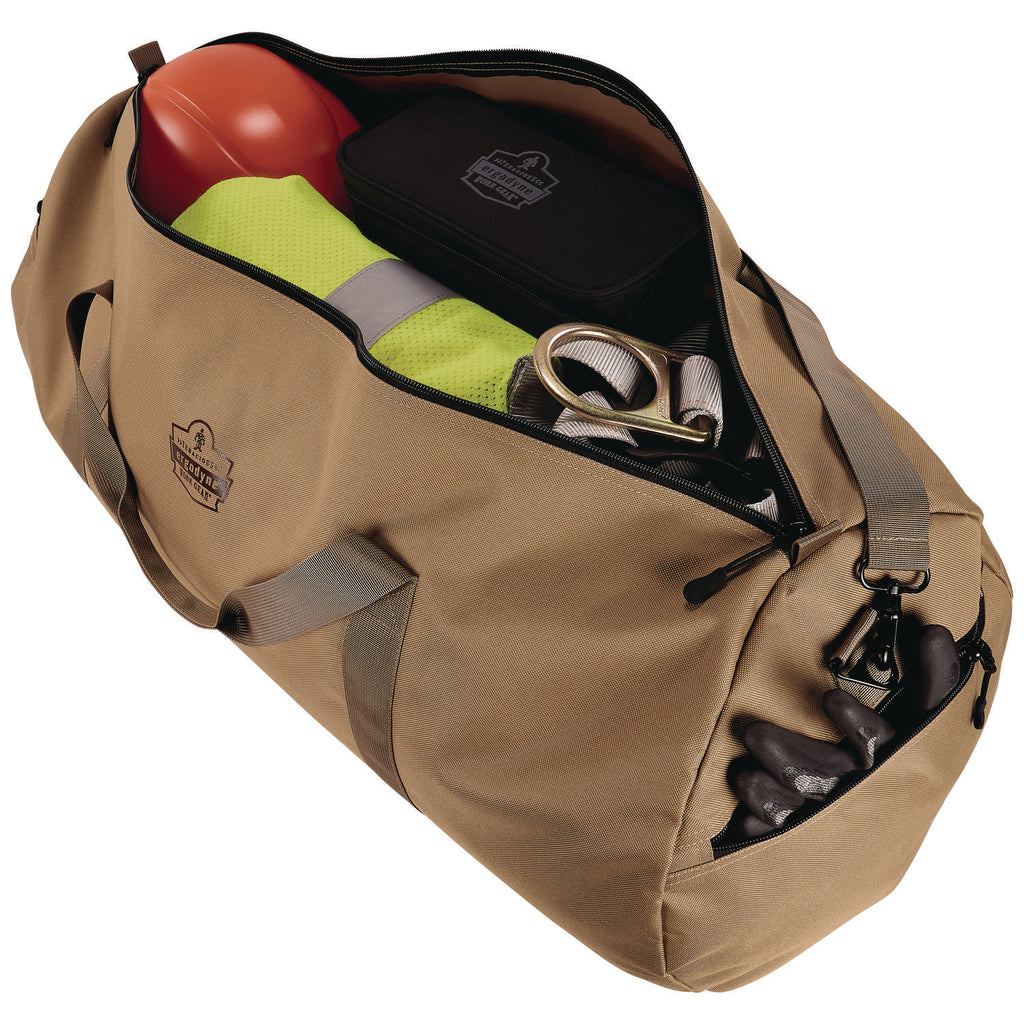 The Arsenal 5020P Standard Gear Duffel Bag is easy to carry and helps organize everything you need for the workday or the weekend. Whether you use it as a way to store your equipment on the job, a hunting bag to trek your gear through the woods, or as a carry-on duffel bag while traveling, you can rely on this utility duffel bag to house and protect your valuables. This lightweight, yet super durable gear bag is made with 600D polyester material to withstand wear and tear for long-lasting performance. Keep your essentials clean and dry with the reinforced water-resistant backing. Heavy-duty ribbed webbing handles and the adjustable padded shoulder straps. A large open main compartment fits all your gear with easy loading and unloading, so nothing is left behind. There are two accessory pockets with zippers on each side to hold smaller items.