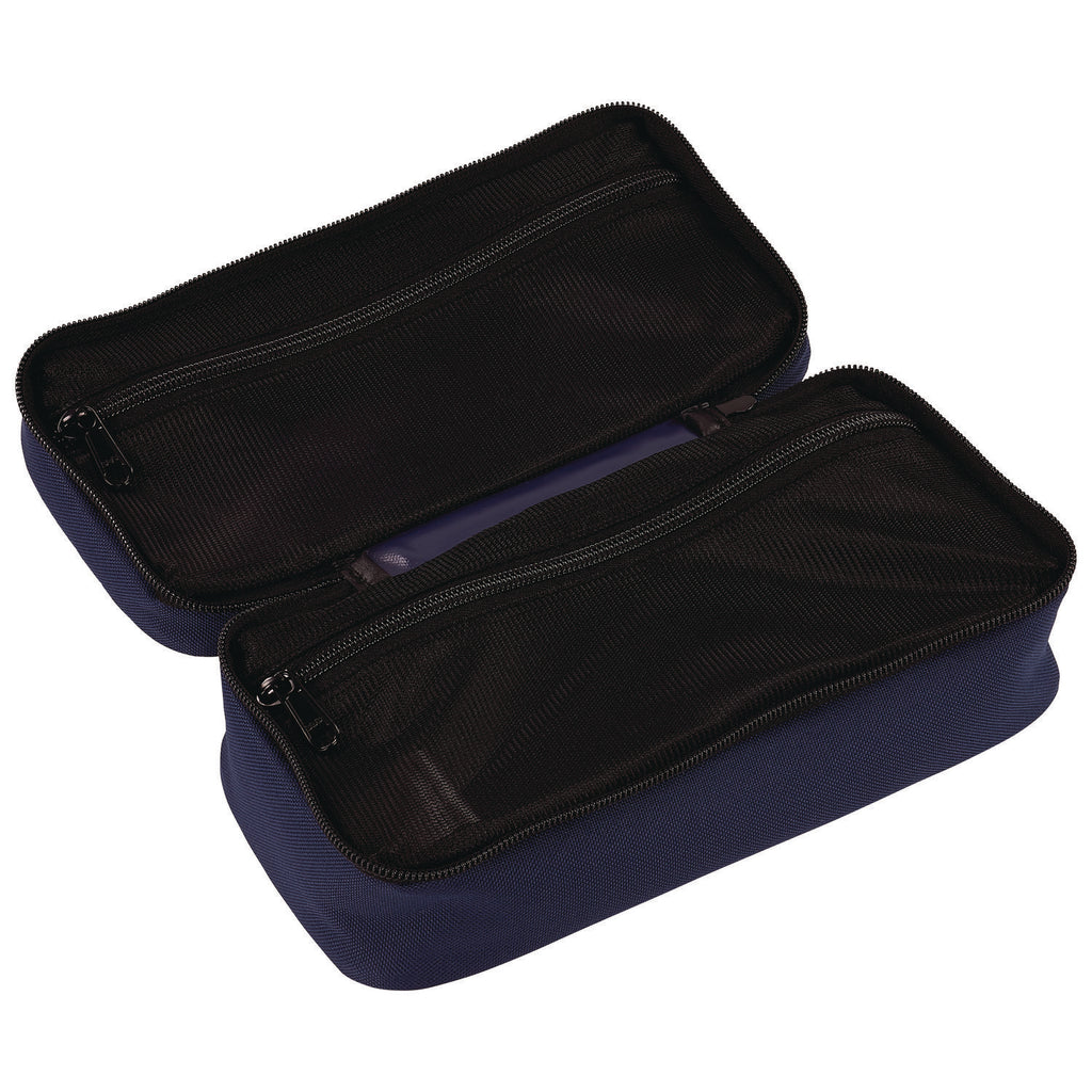 The Arsenal 5877 Softshell Tool Case is built for easy storage and organization of small tools, accessories or personal items, while also remaining compact enough to easily transport and store. Crafted with a durable 600D polyester material and water-resistant backing, these zippered bags are designed to protect gear for long-lasting use. This tool case opens completely and lays flat for easy access and viewing. Two mesh, zippered pockets in the interior make for complete and easy organization of small items and tools, while an exterior ID card window holds business cards and jobsite IDs for easy identification. A top grab handle makes for easy transport. Ideal for installers, electricians, carpenters, HVAC workers and various trade professionals, as well as for personal use for home organization, photographers or makeup artists.