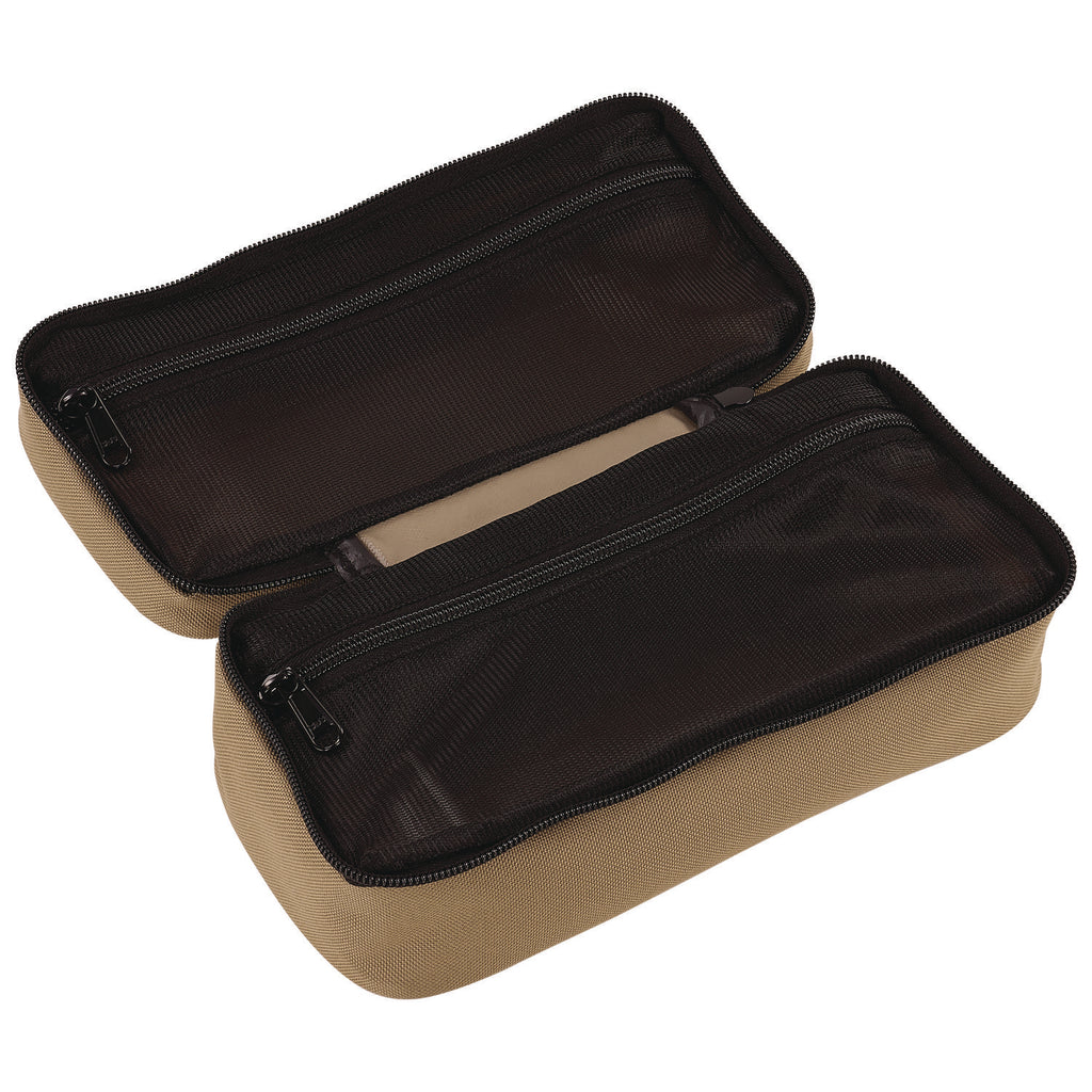 The Arsenal 5877 Softshell Tool Case is built for easy storage and organization of small tools, accessories or personal items, while also remaining compact enough to easily transport and store. Crafted with a durable 600D polyester material and water-resistant backing, these zippered bags are designed to protect gear for long-lasting use. This tool case opens completely and lays flat for easy access and viewing. Two mesh, zippered pockets in the interior make for complete and easy organization of small items and tools, while an exterior ID card window holds business cards and jobsite IDs for easy identification. A top grab handle makes for easy transport. Ideal for installers, electricians, carpenters, HVAC workers and various trade professionals, as well as for personal use for home organization, photographers or makeup artists.
