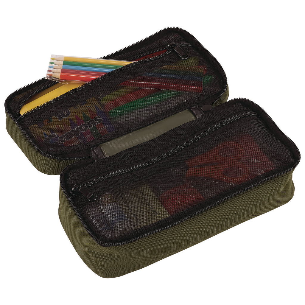 The Arsenal 5877 Softshell Tool Case is built for easy storage and organization of small tools, accessories or personal items, while also remaining compact enough to easily transport and store. Crafted with a durable 600D polyester material and water-resistant backing, these zippered bags are designed to protect gear for long-lasting use. This tool case opens completely and lays flat for easy access and viewing. Two mesh, zippered pockets in the interior make for complete and easy organization of small items and tools, while an exterior ID card window holds business cards and jobsite IDs for easy identification. A top grab handle makes for easy transport. Ideal for installers, electricians, carpenters, HVAC workers and various trade professionals, as well as for personal use for home organization, photographers or makeup artists.