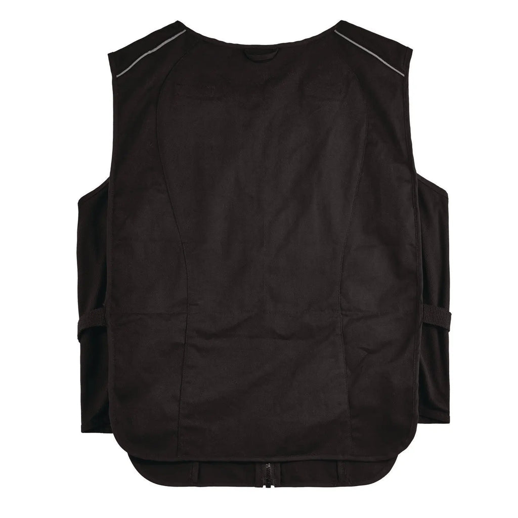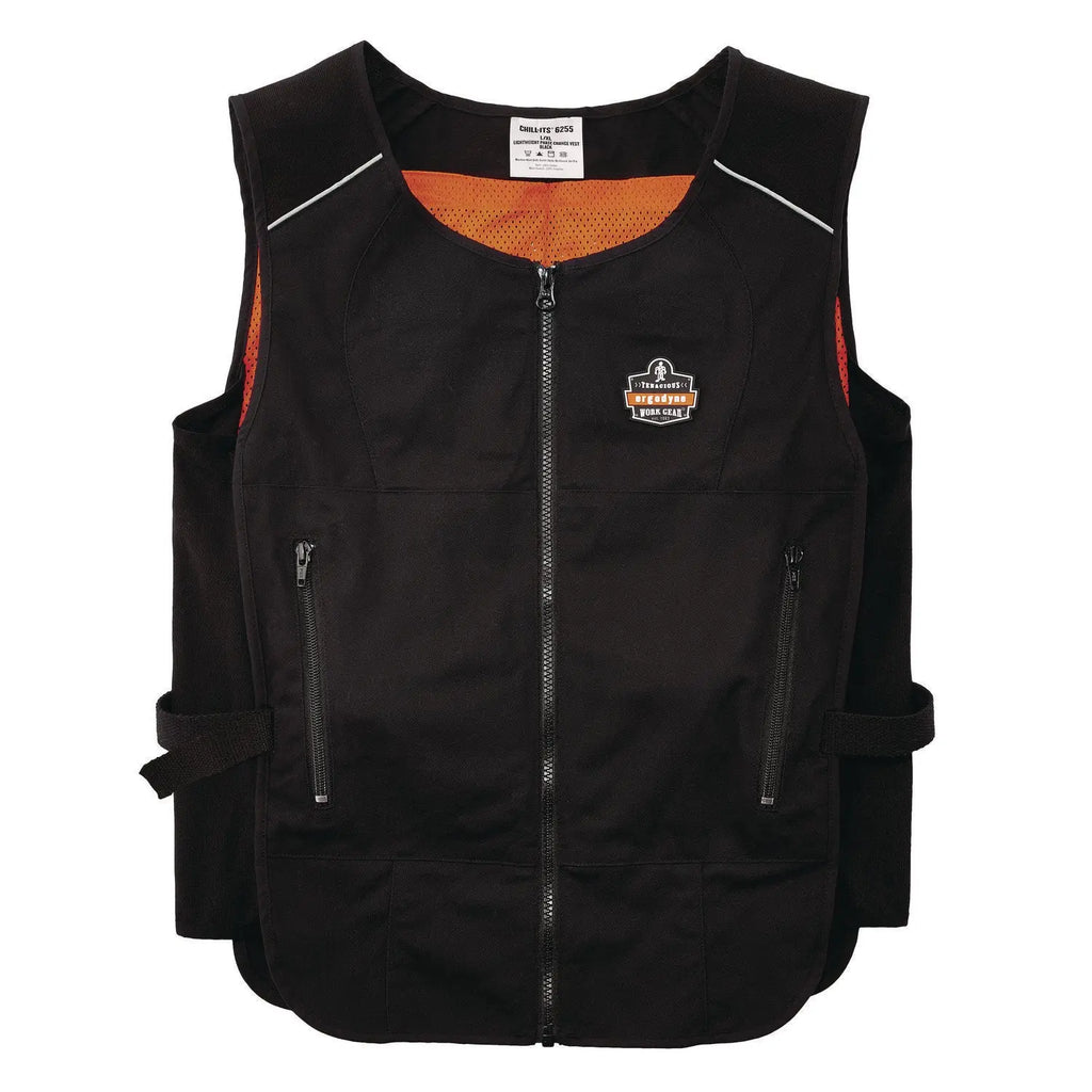 The lightweight cooling vest helps to keep workers cooler, safer and more productive. Its phase change cooling material maintains a 64°F/18°C temperature for up to two hours when activated. The vest's adjustable hook and loop closures around the waist provide a customized fit for different body types. The heavy-duty front zipper makes for easy on/off, while the two front zippered pockets can be used to store small accessories. Phase Change Cooling Packs not included. There are many ways to activate your cooling vest. Simply place the four removable packs in a cooler of ice water for five minutes; freezer for eight minutes; refrigerator for 12 minutes; or near an air conditioner for one hour. The cooling pack should be washed by hand with a mild detergent and warm water. Do not machine wash or machine dry. The fabric vest is machine washable with mild soap.