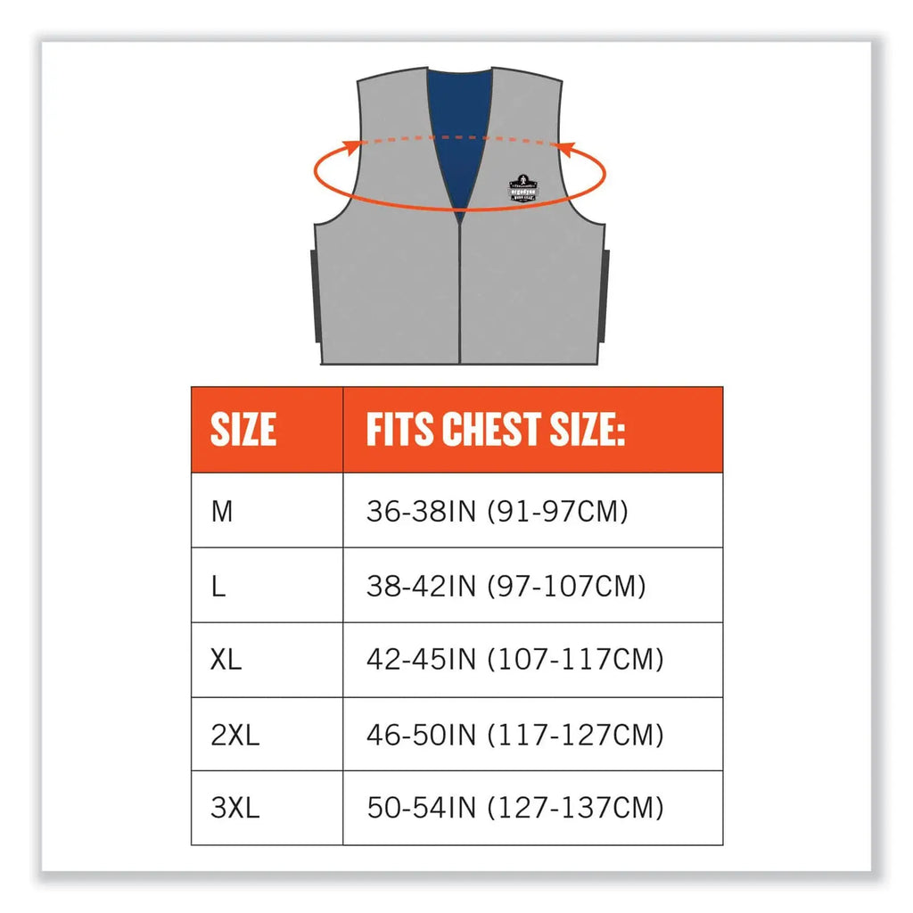 Advanced polymer-embedded fabric provides workers with immediate core cooling relief from the heat. This lightweight cooling vest is made of comfortable and durable quilted nylon exterior with mesh side panels for ventilation and stretch. Wear this body cooling vest over a t-shirt. A water-repellant liner keeps the interior of the vest as dry as possible when activated, though wearers should expect to feel some dampness/wetness. Evaporative cooling technologies such as embedded polymers are a simple, effective and comfortable solution for heat stress prevention. Similar to how sweat cools the body, evaporative technologies use an external water source to draw heat away helping to regulate body temperature while providing cool relief. In order to activate, soak in water for two to five minutes. The embedded polymers will retain water for up to four hours of cooling relief. Hand wash as needed and hang to dry.