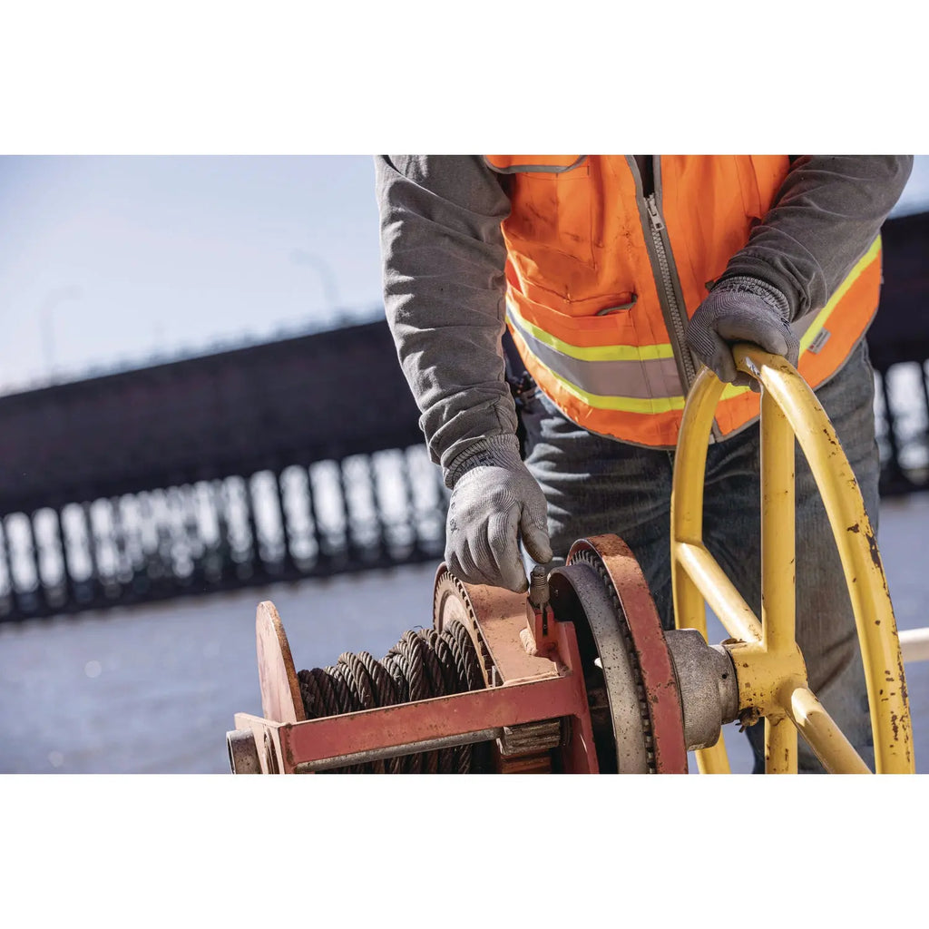 - 13-gauge HPPE polyester-spandex knit with PU coating moves with you for all-day comfort and minimal hand fatigue.