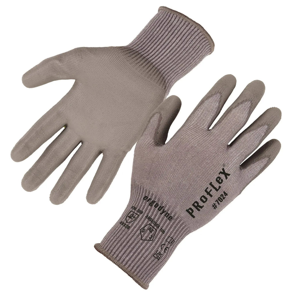 These gloves feature ANSI A2 cut protection for safety around sharp materials. Tested to ANSI level 5 abrasion resistance, these durable work gloves are built to withstand tough environments. The form-fitting 13-gauge HPPE nylon-spandex knit protects from cuts and knicks without compromising flexibility or comfort. The snug knit cuffs are longer than most on the market, a feature that enhances fit and extends protection while keeping dirt and debris out. The palms of these safety gloves are dipped in PU (polyurethane), a strong but flexible coating that delivers secure grip with enhanced dexterity on a variety of surfaces.