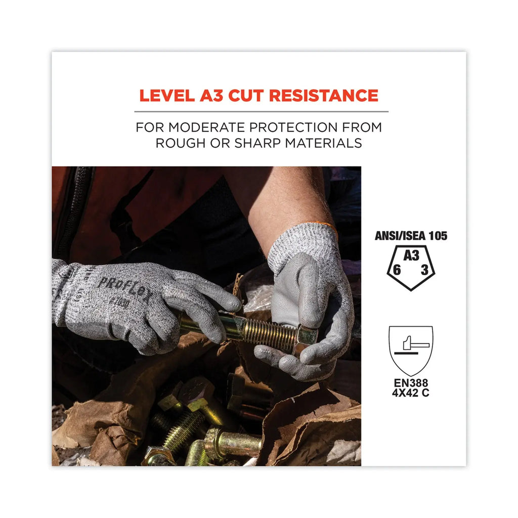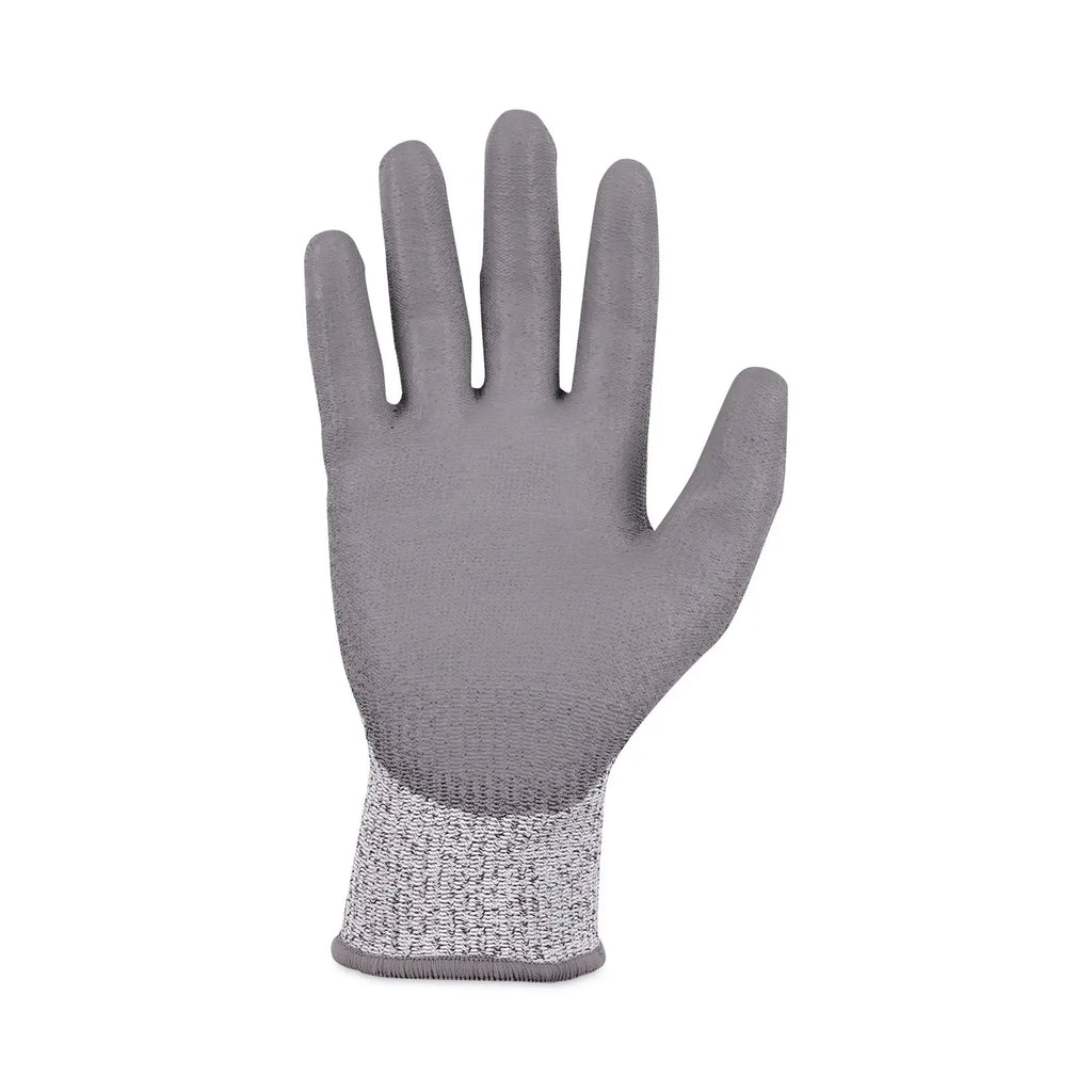 These gloves feature ANSI A3 cut protection for safety around sharp materials. The form-fitting 13-gauge HPPE nylon-spandex knit protects from cuts and knicks without compromising flexibility or comfort. The snug knit cuffs are longer than most on the market, a feature that enhances fit and extends protection while keeping dirt and debris out. The palms of these safety gloves are dipped in PU (polyurethane), a strong but flexible coating that delivers secure grip with enhanced dexterity on a variety of surfaces. The 13-gauge seamless HPPE nylon-spandex knit is tested to ANSI A3 cut protection and Level 6 abrasion resistance for safety around sharp or rough materials.