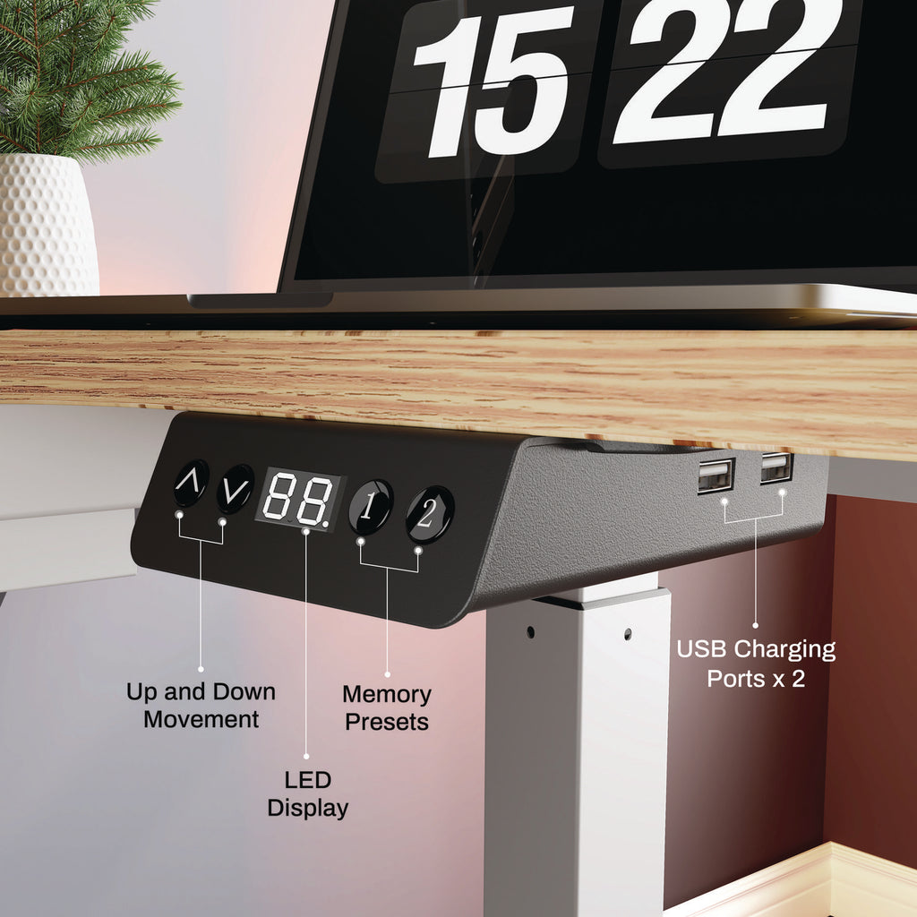 - Fast, smooth, quiet transitions from 34.38" to 52.88" with memory presets and collision detection.