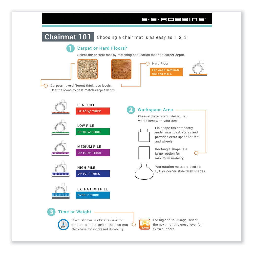 Extend the life of your extra high pile carpet by protecting against chair caster wear and tear. The perfect addition to your workspace, EverLife® chair mats provide a smooth rolling surface that enhances ergonomic comfort.