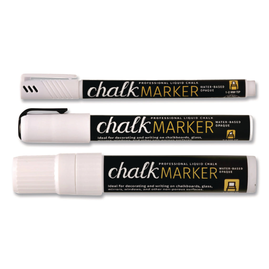 Going beyond a low-mess alternative to board chalk, these versatile markers are perfect for a wide range of projects. Smooth-flowing ink and opaque pigments help you express yourself with precision and flair in bold, vivid colors. Ideal for chalkboards, windows, mirrors and other nonporous surfaces, chalk markers erase easily with a damp cloth or sponge.
