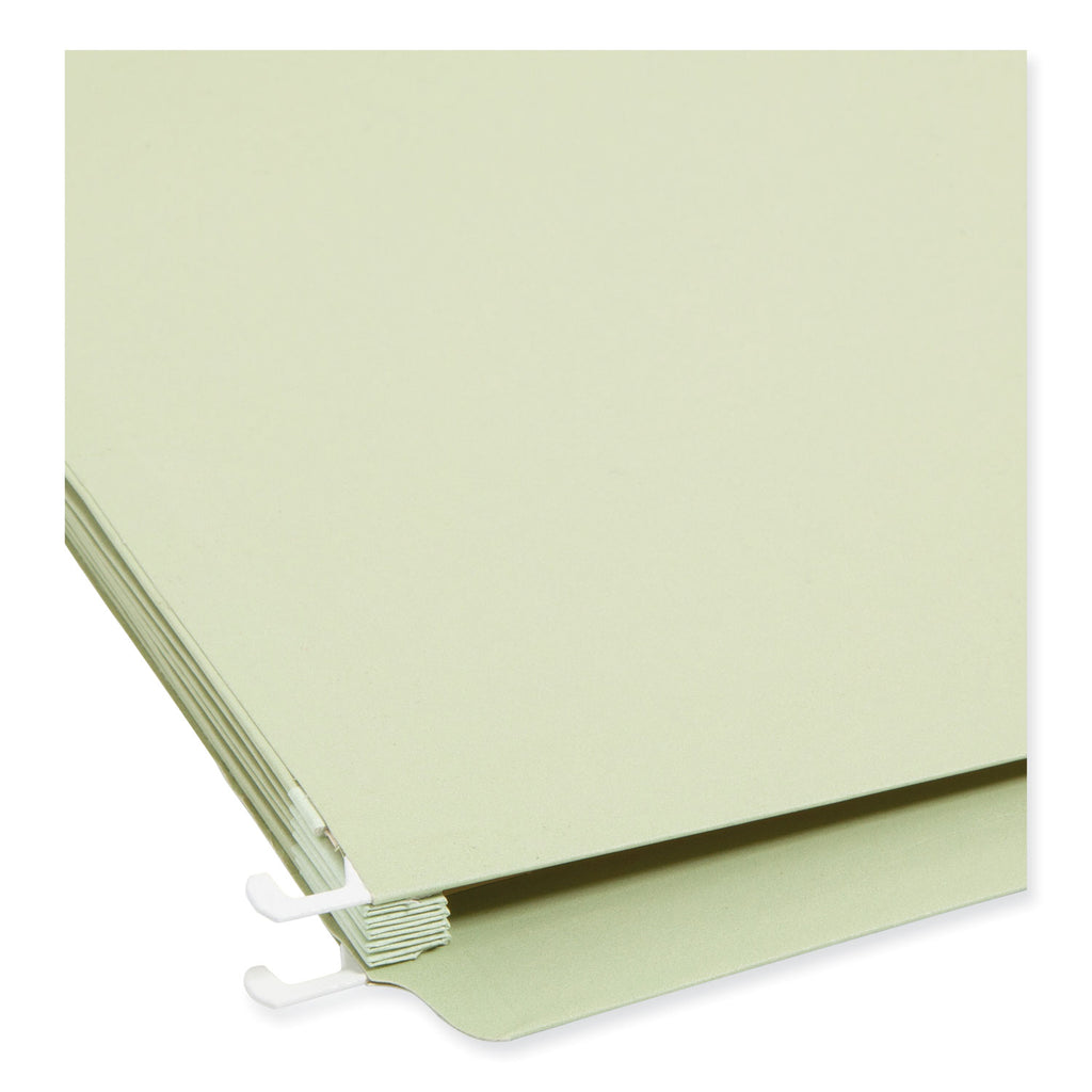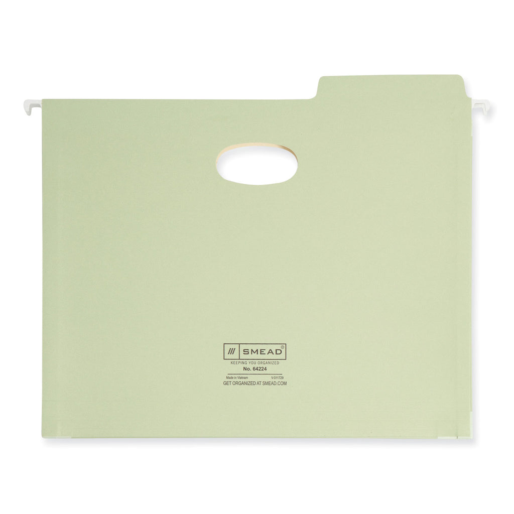 FasTab® hanging pockets have built-in heavy-duty reinforced tabs permanently attached to the folder. No assembly is required. They are easy to label by either handwriting directly on the tab or applying self-adhesive labels. TUFF® construction is reinforced at critical wear points with tear-resistant material. Full-height sides secure small or loose items. Die cut handles allow for easy lifting and transporting. Extra capacity accommodates storing bulky documents.