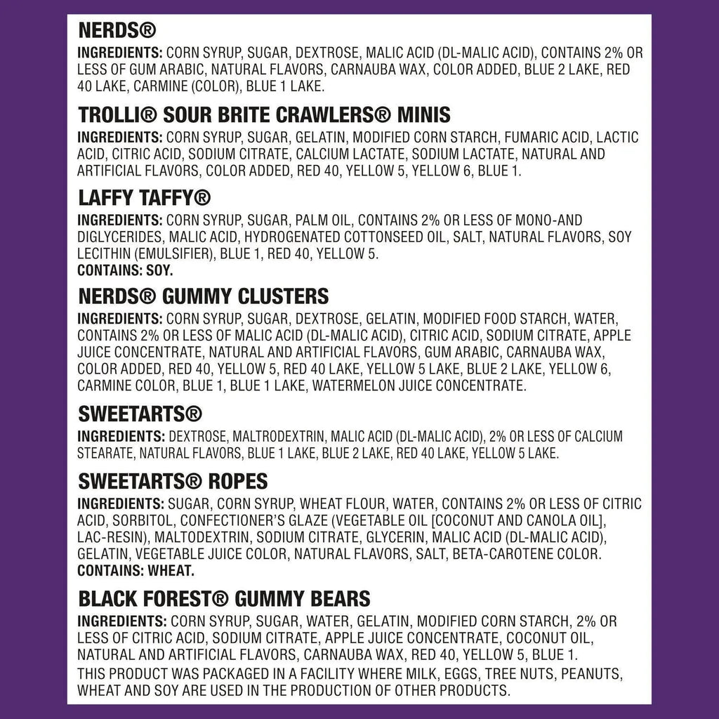 Dive into a delicious assortment of sweet and sour treats. Though designed for parties, holidays and special occasions, these bags are also ideal for the home or office—keep your candy dishes full all year long! Convenient stand-up bag.