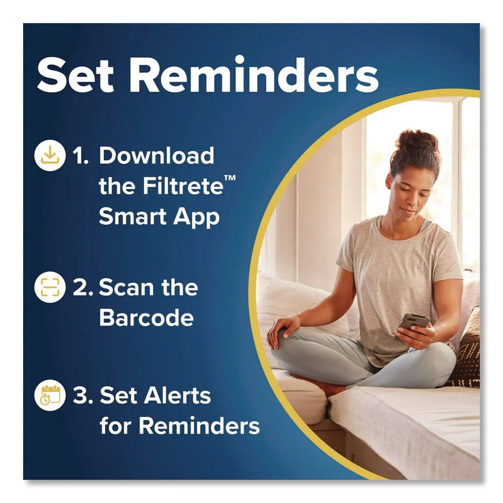 This no-nonsense filter helps capture varying sizes of particles, from the large (lint, pollen, dust and pet dander) to the microscopic (smoke and smog). Opt for this filter to transform your central heating and cooling system into a whole-home air filtration operation. Designed with exclusive Filtrete™ Brand 3-in-1 technology from 3M to trap unwanted air particles while letting cleaner air flow through. Create a change countdown in the Filtrete™ Smart app. Simply use the app to scan the barcode on your filter's packaging, then choose 30, 60 or 90 days for your replacement countdown. When the lifespan is up, you'll get a notification to change your filter.