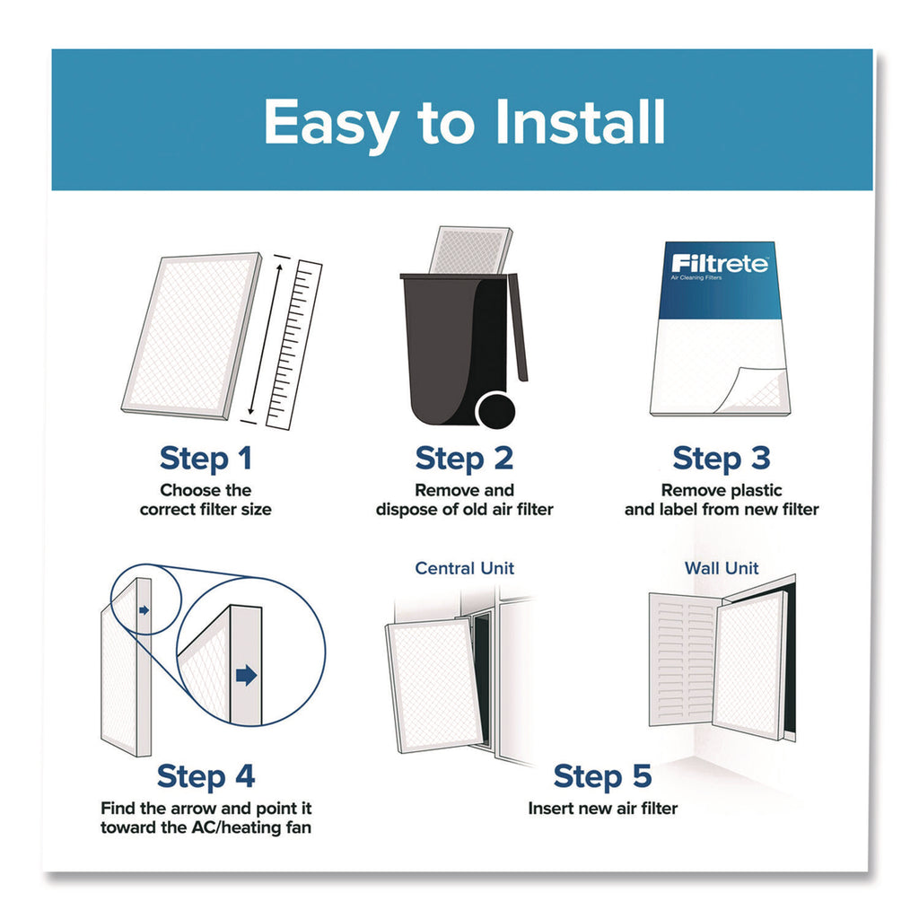 Your home should be your sanctuary, starting with the air you breathe. This filter helps capture unwanted particles from your household air, contributing to a cleaner, fresher home environment. By proactively capturing dust, bacteria, viruses and allergens, these high performance filters help improve your home's air quality. Designed with exclusive Filtrete™ Brand 3-in-1 technology from 3M to trap unwanted air particles while letting cleaner air flow through. Outperforms fiberglass, washable and non-electrostatic three-month pleated 1" home air filters for your furnace, air conditioner or HVAC system.
