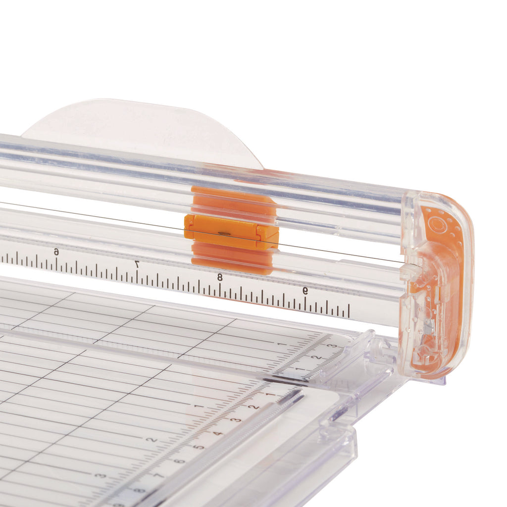 - Wide 5.5" base is perfectly sized for cutting 11" paper for cards.