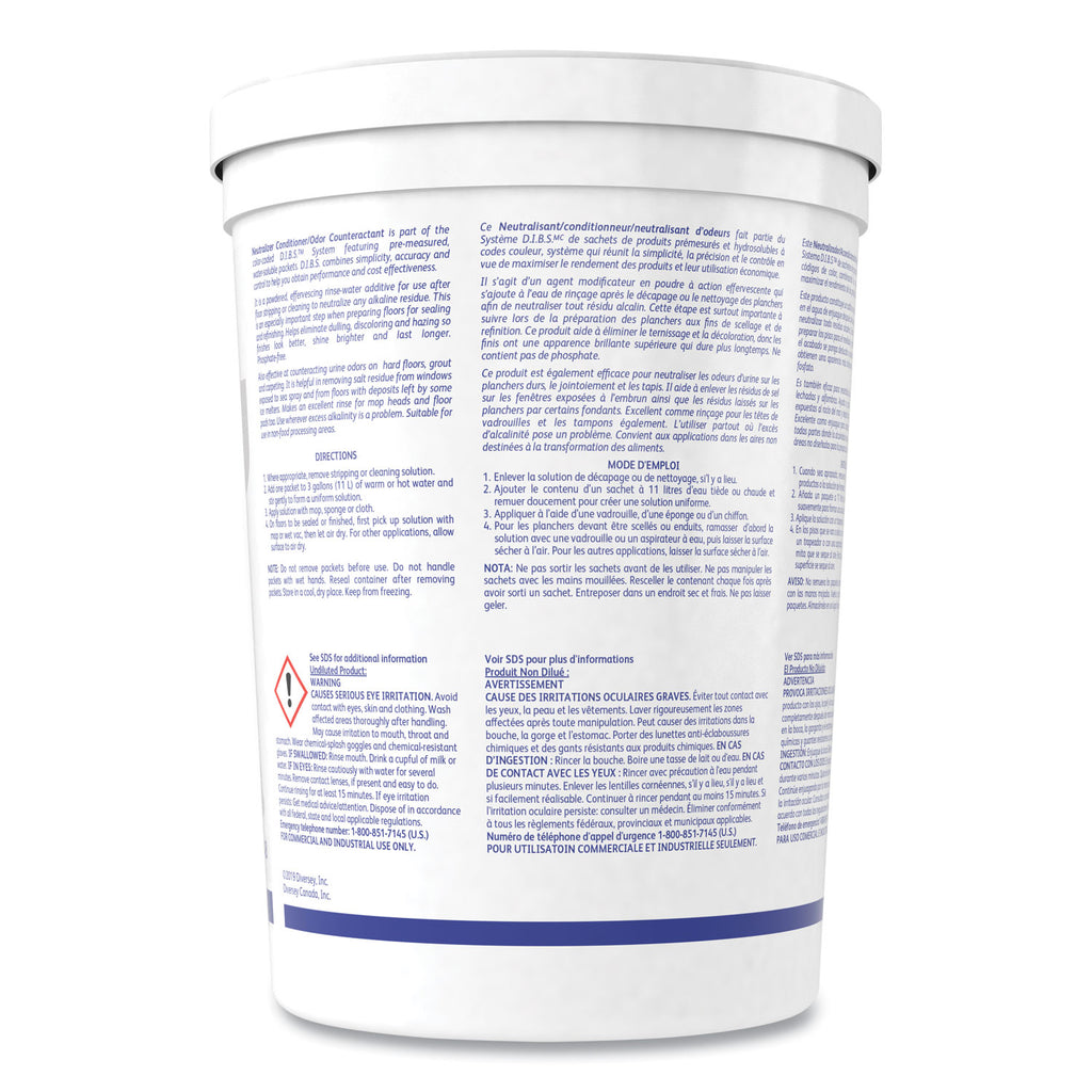 Alkalinity neutralizer is designed for use after stripping floor finishes. Packaged in convenient D.I.B.S.™ Drop-In Bucket System packets. Conditions surface after stripping. Improves adhesion of floor finishes.