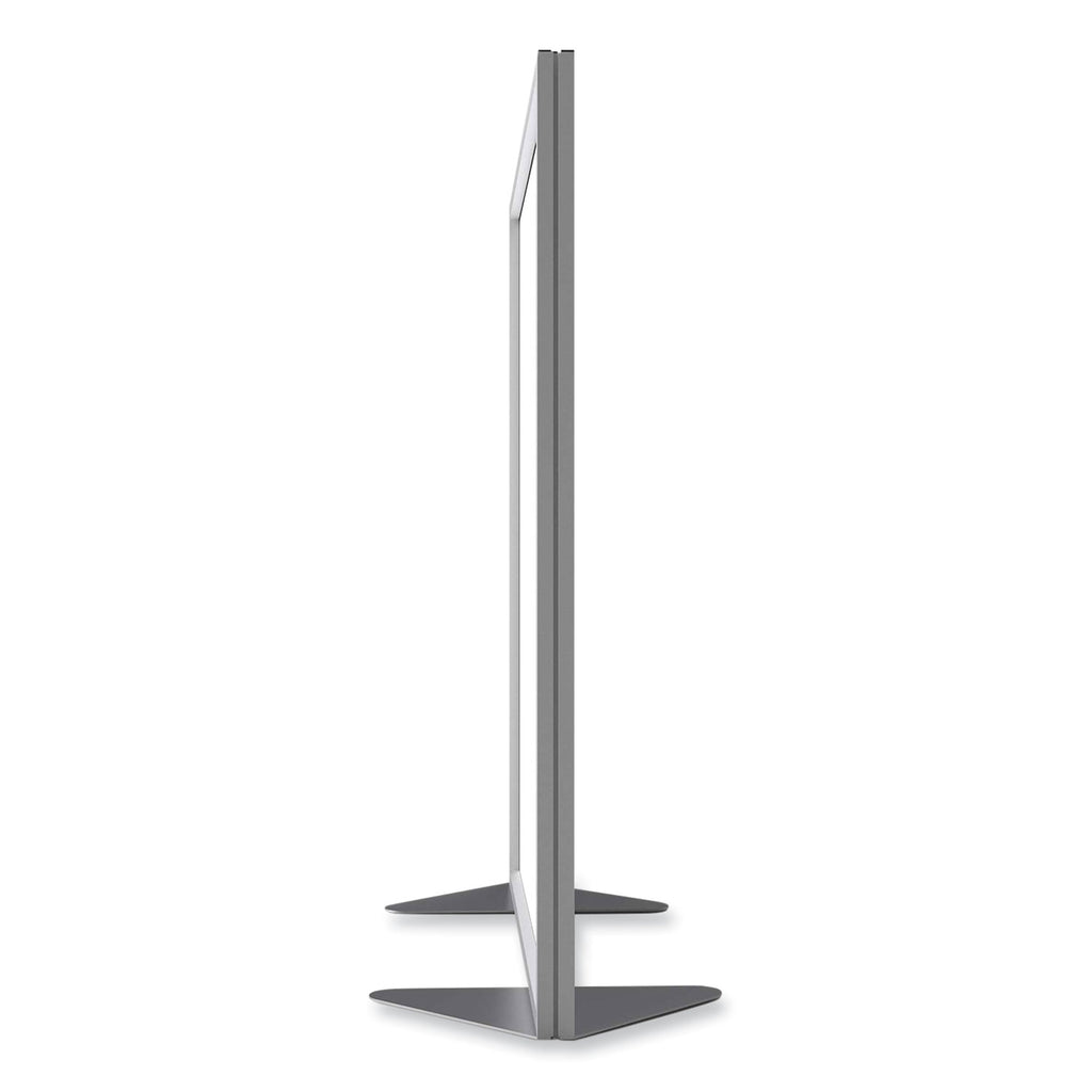 Turn your open workspace into a creative collaboration zone with this floor partition. Create a third space that functions the way you need it to without creating permanent walls. Combine the lightweight, but sturdy, aluminum frame with a porcelain whiteboard, tackable vinyl, or acrylic infill to create a unique collaboration unit that also helps define spaces. Intentionally simple in its design, the partition works well in classrooms, offices, and break-out areas to create visual privacy and spaces for collaborating. This line of freestanding partitions is modular and easy to setup, reconfigure, and take down as needed. The partition works well on its own, however each unit comes standard with the Flex Connector to join multiple units, allowing for angles to be created up to 90°. For more complex configurations, additional connectors are available. Panels are assembled in less than 10 minutes and if change is needed and panels need to be rearranged, infills can be switched without disassembling the entire unit.