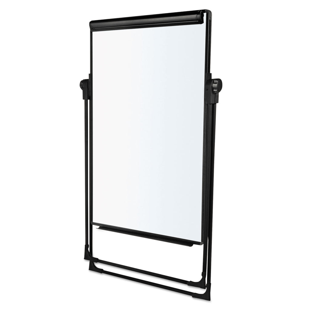 The folds-to-a-table easel is a great presentation tool that also doubles as a table. The Silver Easy Clean Basic dry erase surface is suitable for moderate use. Easy, one-handed, no-pinch easel pad holder for any size easel pad.