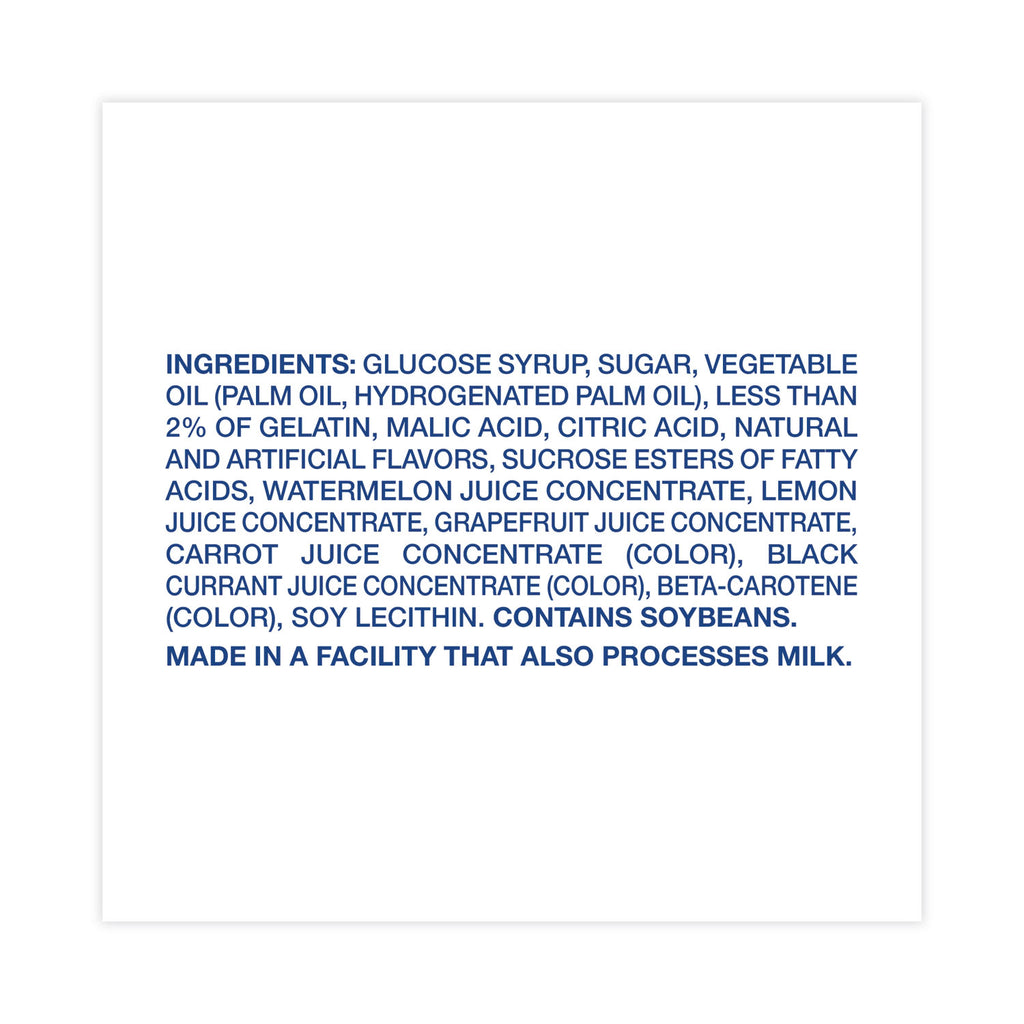 An explosion of real fruity flavors. Long lasting chewy texture. Contains real fruit juices. No artificial colors, cholesterol-free and 0 grams trans fat.