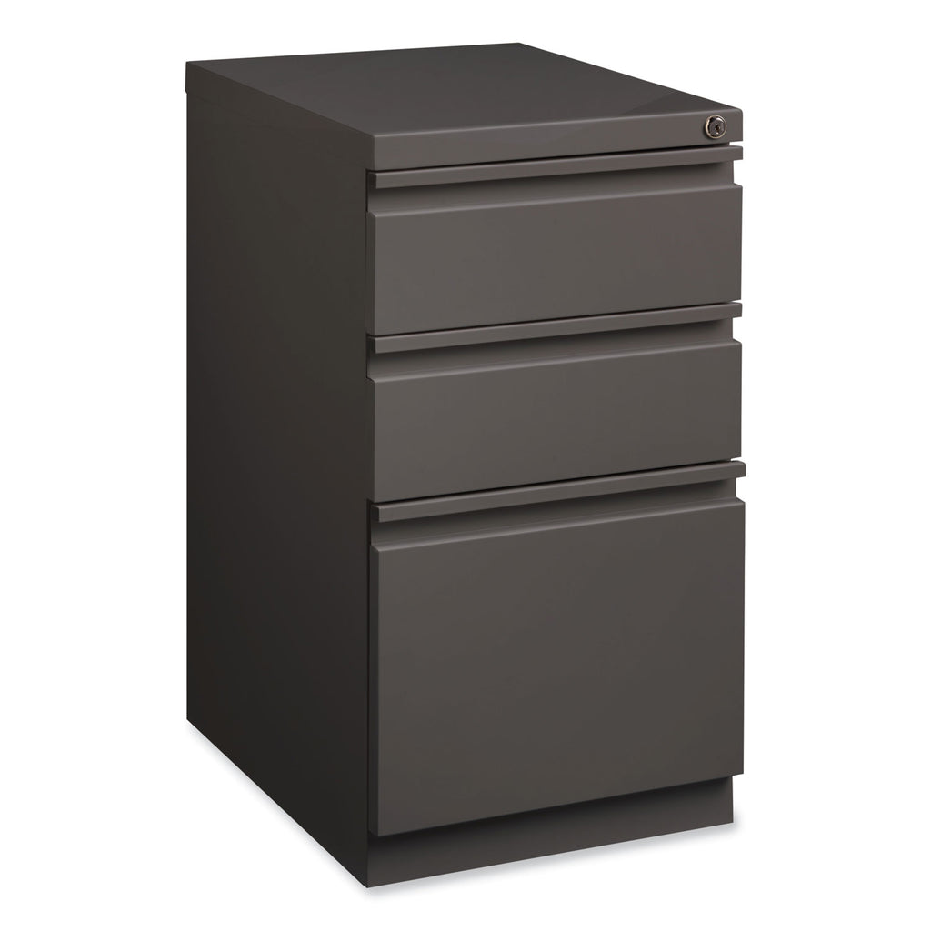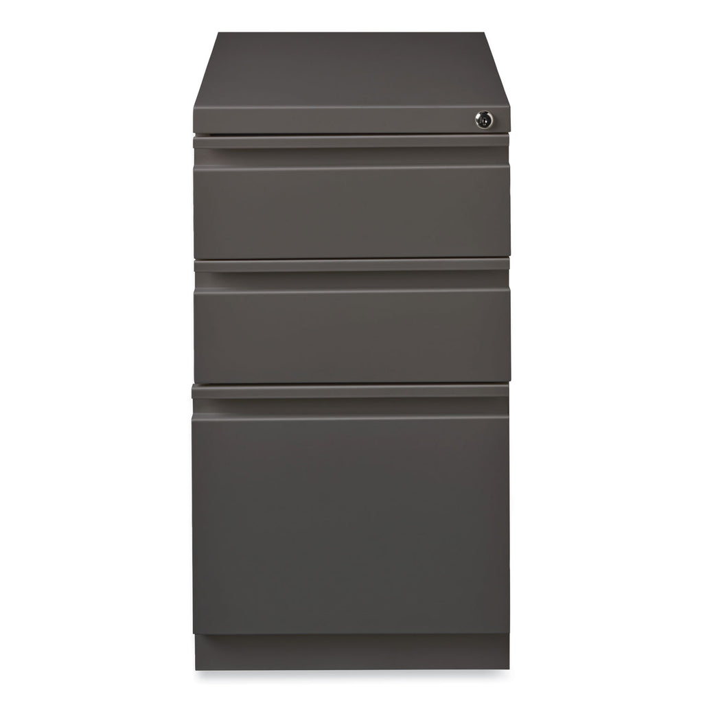 Designed to support the demand of today's office. Durable, fully assembled steel construction with non-porous surface is easy to clean. These commercial grade mobile pedestals come standard with factory installed hidden casters, full extension drawers, counterweights, and a core-removable lock for security. File drawers accommodate letter-size hanging files. The ball-bearing suspension ensures a smooth and quiet drawer performance. Extended fronts with full-width drawer pulls provide a sleek and contemporary design. 27.75 height allows these units to roll under most work surfaces.