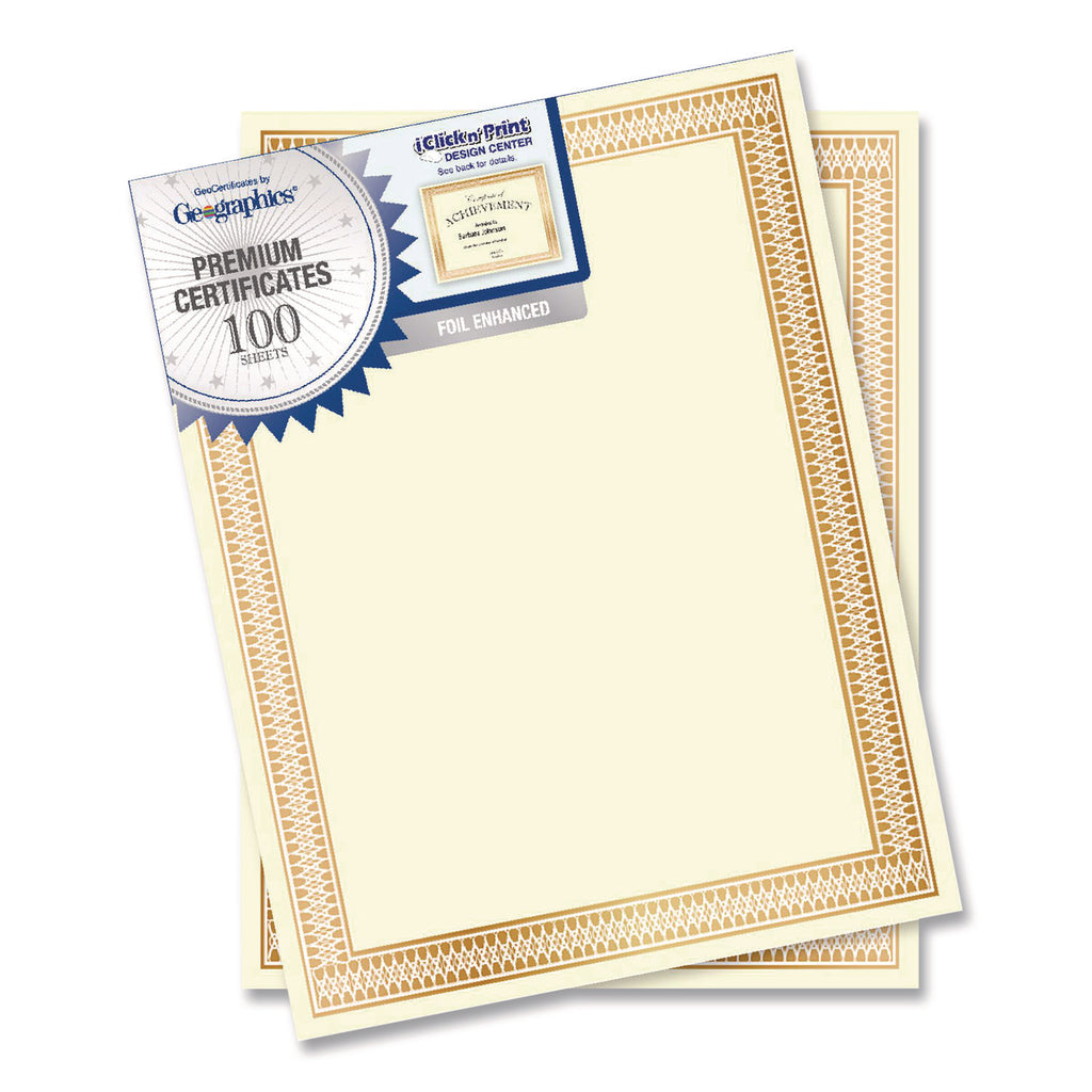 Use to create recognition of achievements. Can be used with inkjet or laser printers, copiers, quick printing, typewriters and calligraphy. For use with Geographics document covers. Compatible with all major software programs. Each has parchment finish.