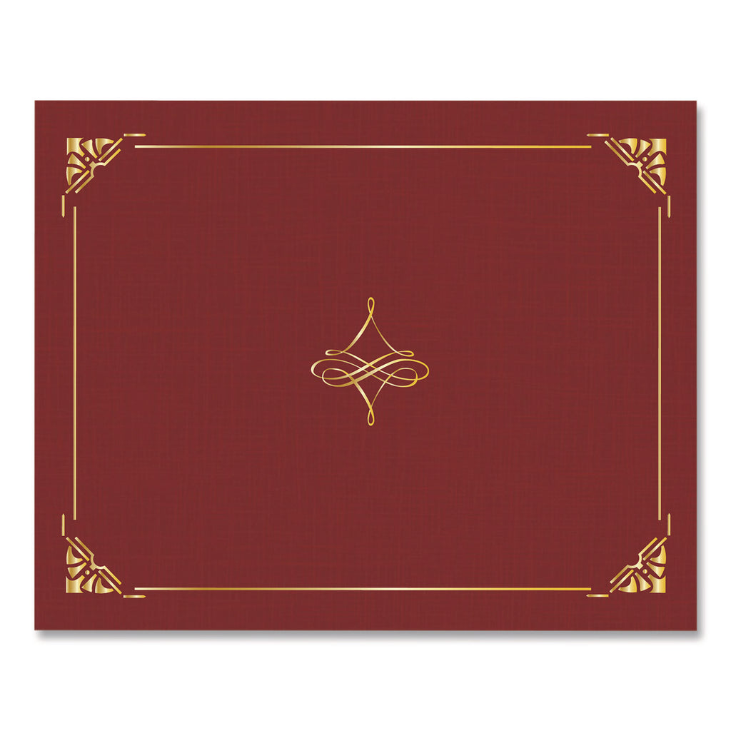 The perfect way to hold and frame precious documents and certificates. Premium 80-lb linen textured cover stock with elegant gold-foil design adds a touch of elegance to any important paper. Easy to use-slip the full-size certificate into die cut to hold 8 x 11 certificates, or A4 and 8 x 10 photos and documents. Also great as photo holders, invitation folders, menus and more.