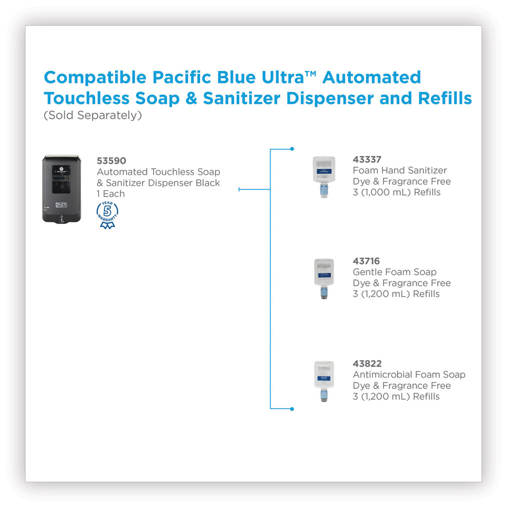 - Compatible only with Pacific Blue Ultra™ Automated Touchless Hand Soap and Hand Sanitizer Refills.