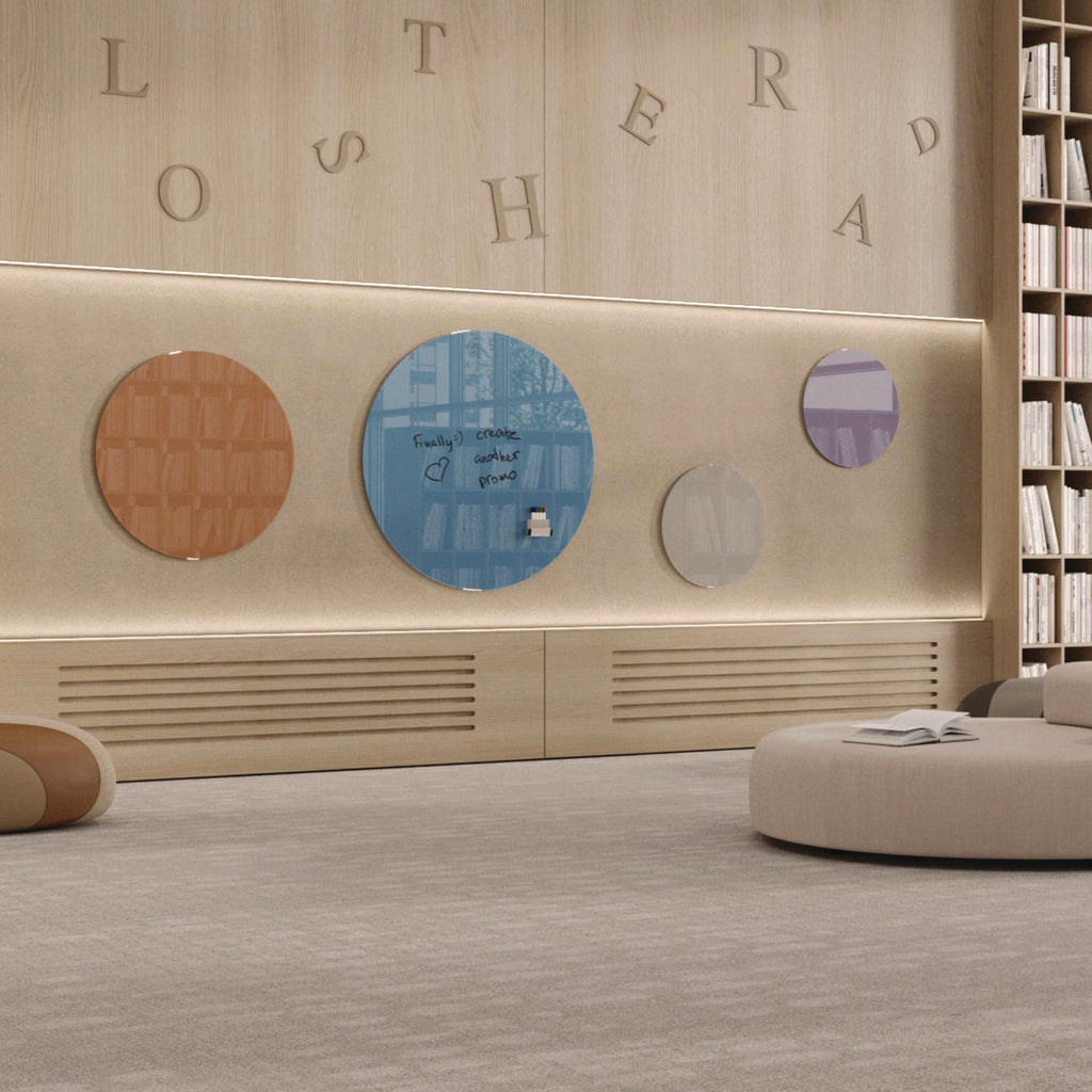 Ghent Coda Low Profile Circular Magnetic Glassboard, 36 x 36, Denim Surface