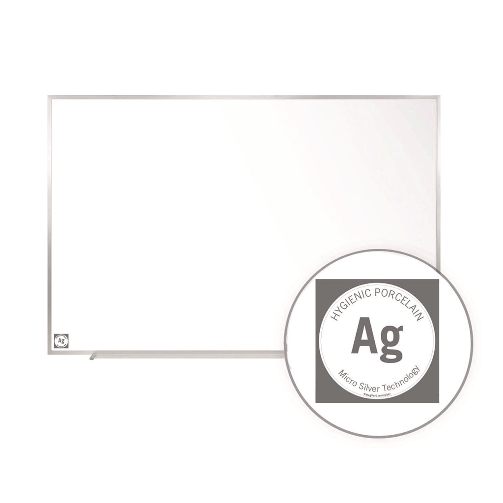 Superior, porcelain-on-steel surface features embedded micro-silver particles to eliminate bacterial and viral contaminants within 24 hours of contact. Hardboard backer and anodized aluminum frame deliver added strength and durability. Scratch-, dent-, stain- and ghost-resistant.