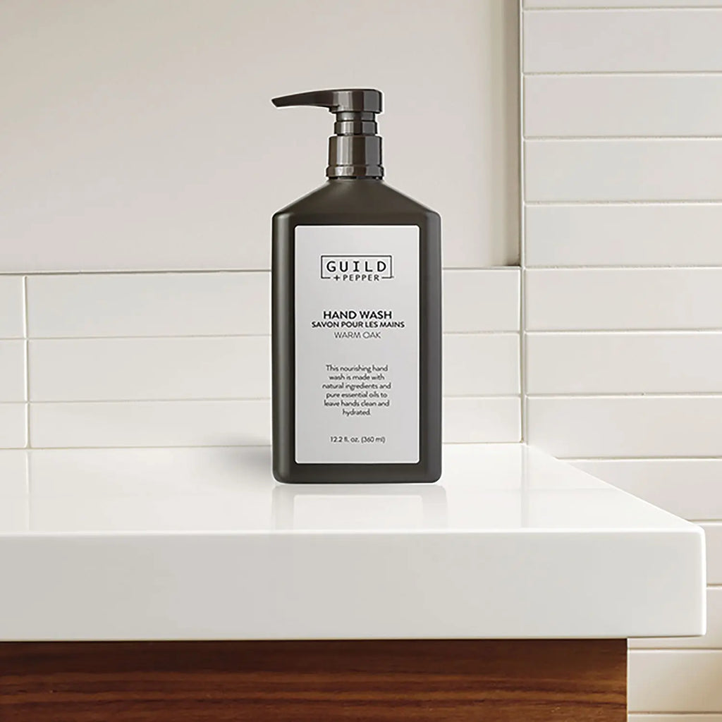 Carefully crafted with high quality ingredients and essential oils. Guild+Pepper® represents the perfect alchemy of past and present, a thoroughly modern throwback designed to intrigue. The formula contains green tea extracts, heather extracts and natural essential oils to invigorate and cleanse hands, with hints of oak, citrus and spice. The rich fragrance creates a sensory experience. Pump bottle dispenses liquid and is paired with discreet individual ABS brackets (sold separately).