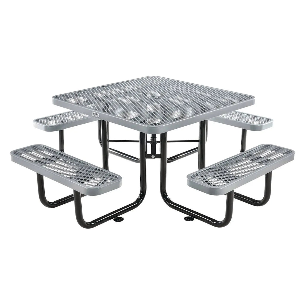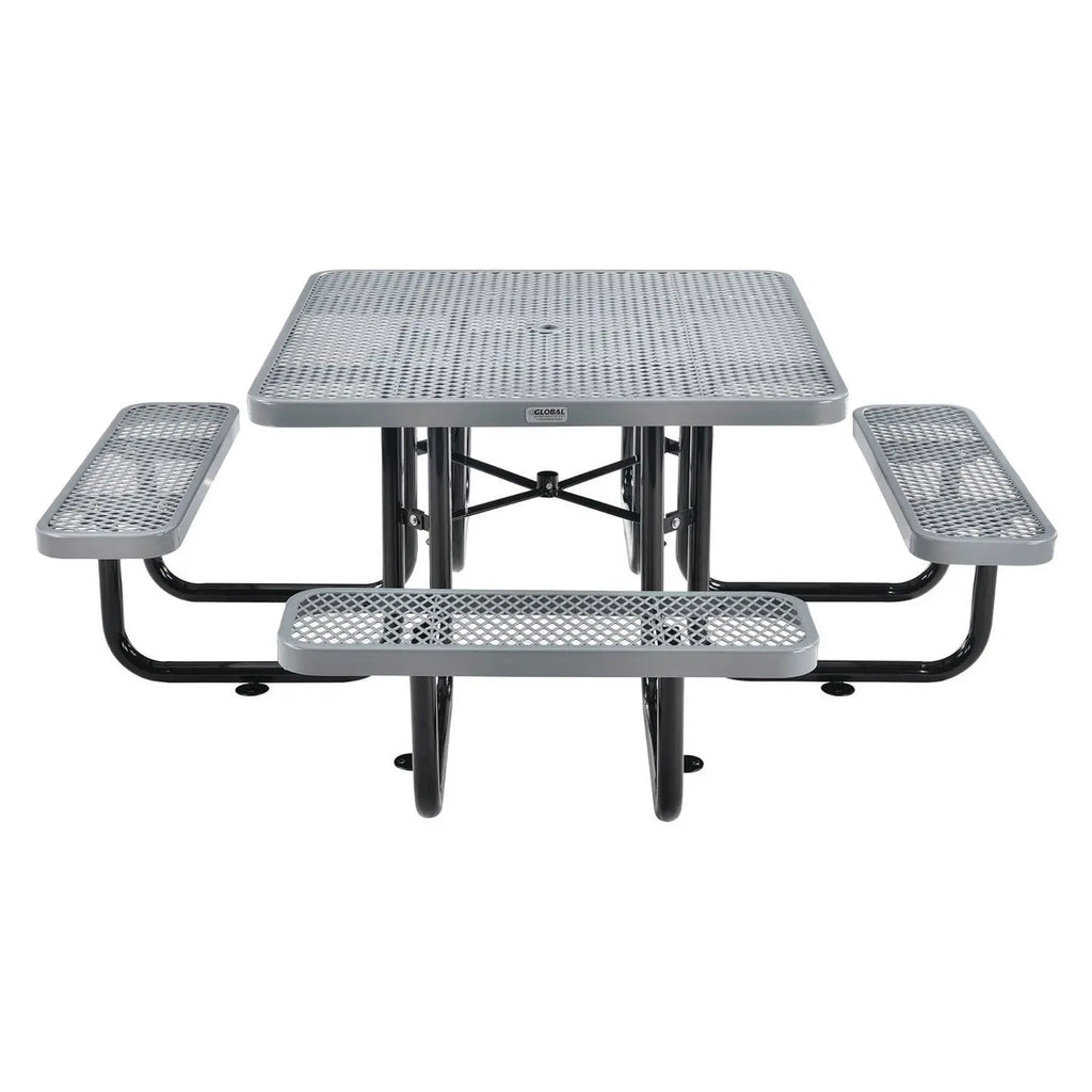 This collection of Expanded Steel Picnic Tables is made with galvanized steel and a zinc powder-coat finish for durability and protection against the elements. Featuring a mesh design, these metal picnic tables are comfortable and perfect for outdoor events. The expanded metal picnic table is able to retain structural integrity throughout use.