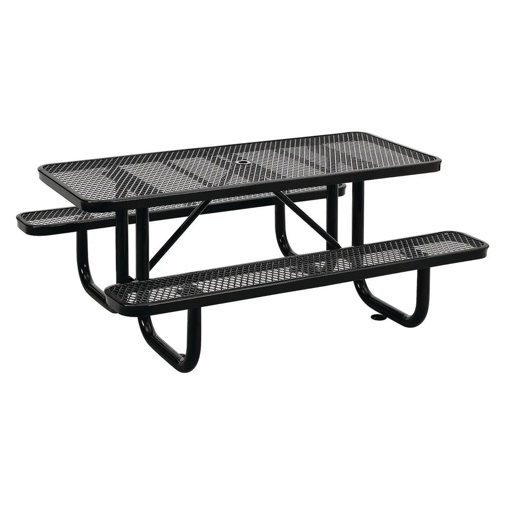 This collection of Expanded Steel Picnic Tables is made with galvanized steel and a zinc powder-coat finish for durability and protection against the elements. Featuring a mesh design, these metal picnic tables are comfortable and perfect for outdoor events. The expanded metal picnic table is able to retain structural integrity throughout use.