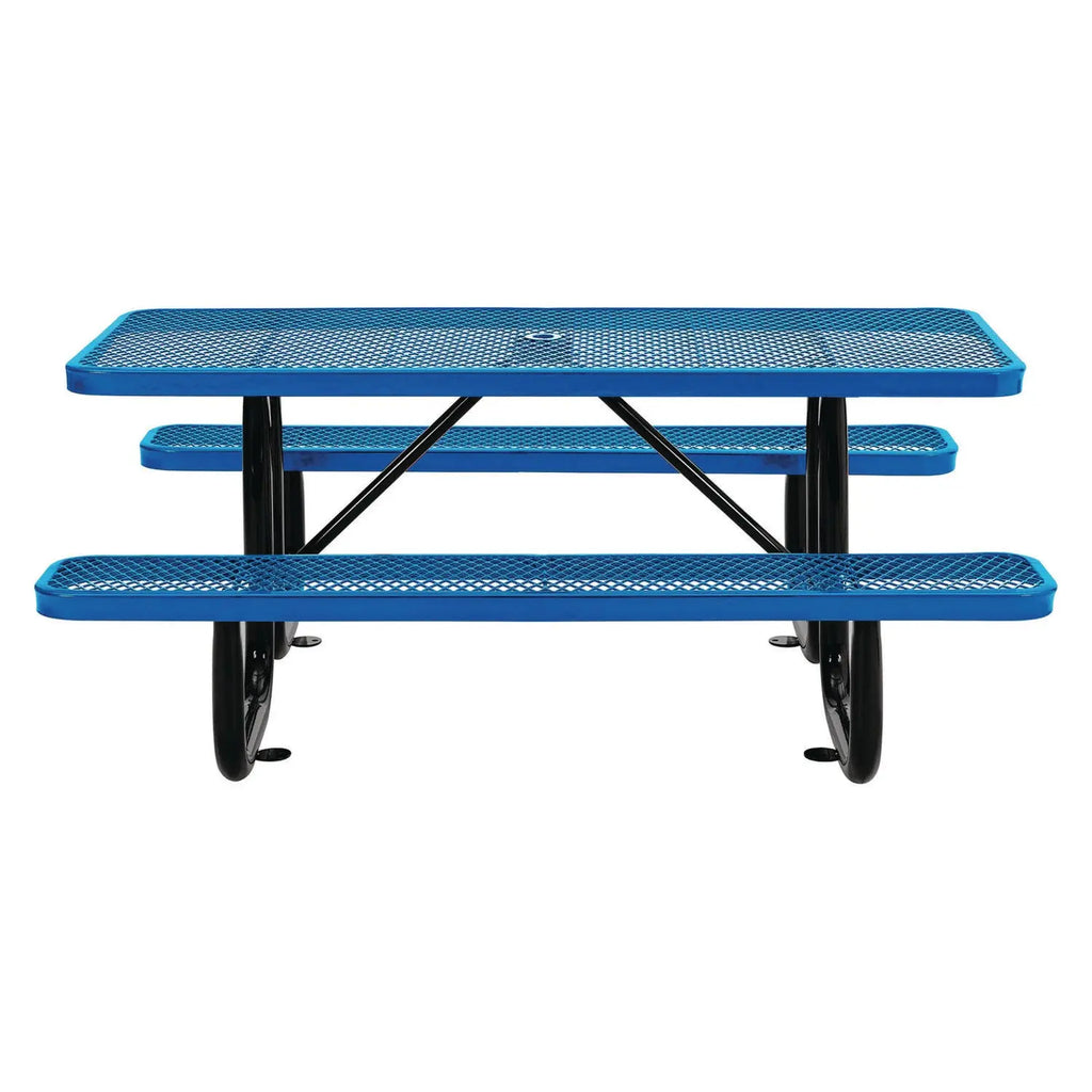 This collection of Expanded Steel Picnic Tables is made with galvanized steel and a zinc powder-coat finish for durability and protection against the elements. Featuring a mesh design, these metal picnic tables are comfortable and perfect for outdoor events. The expanded metal picnic table is able to retain structural integrity throughout use.