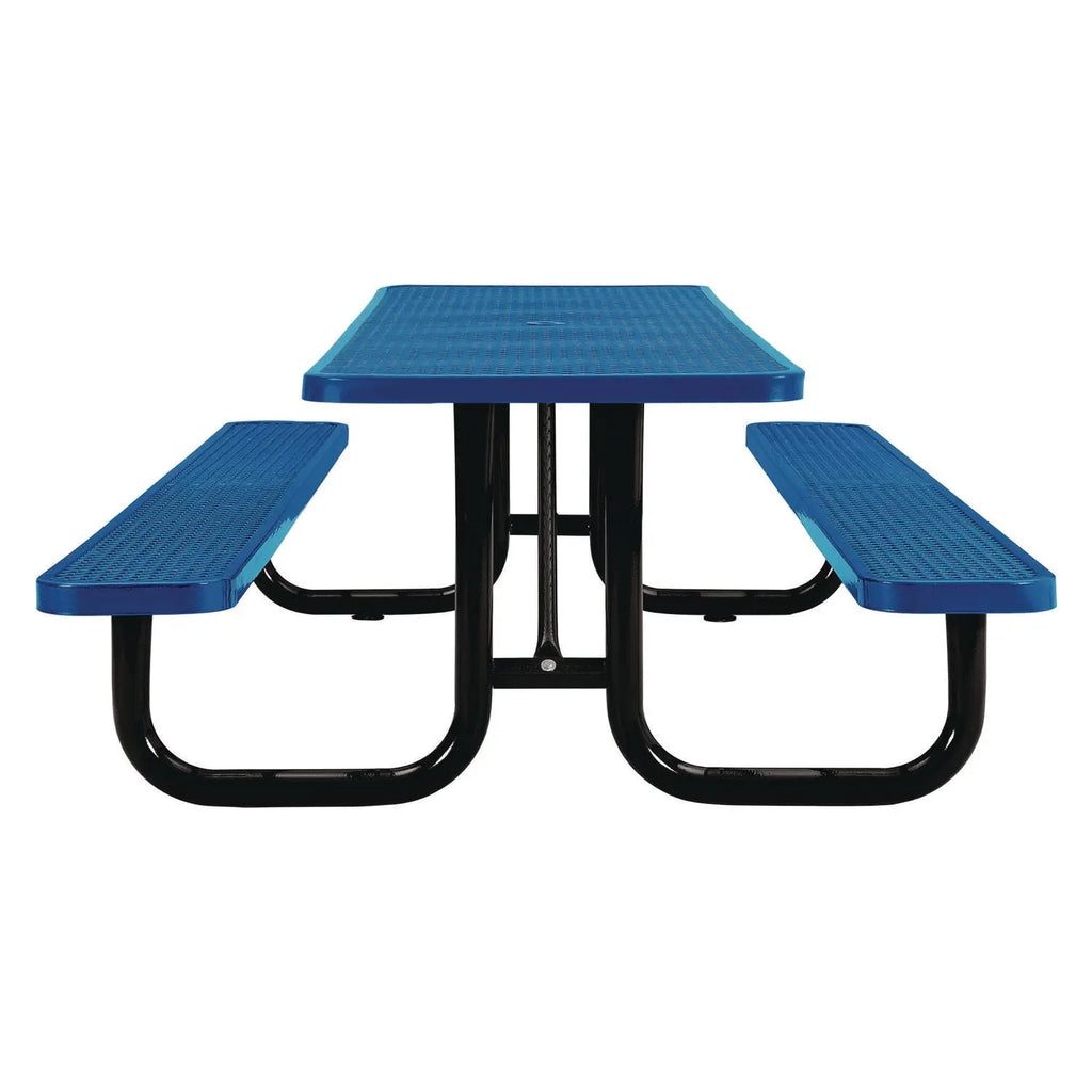 This collection of Expanded Steel Picnic Tables is made with galvanized steel and a zinc powder-coat finish for durability and protection against the elements. Featuring a mesh design, these metal picnic tables are comfortable and perfect for outdoor events. The expanded metal picnic table is able to retain structural integrity throughout use.