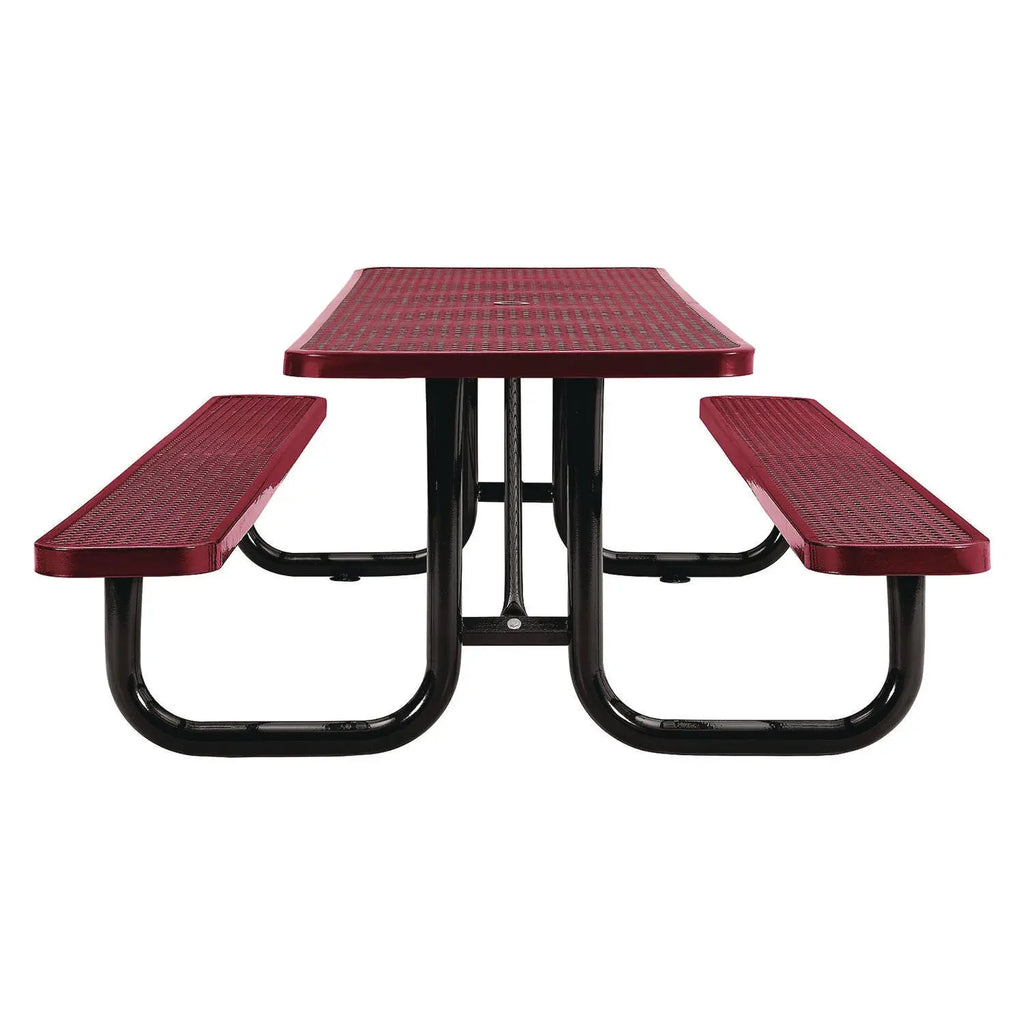 This collection of Expanded Steel Picnic Tables is made with galvanized steel and a zinc powder-coat finish for durability and protection against the elements. Featuring a mesh design, these metal picnic tables are comfortable and perfect for outdoor events. The expanded metal picnic table is able to retain structural integrity throughout use.