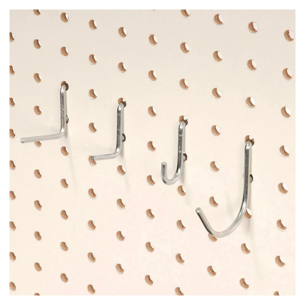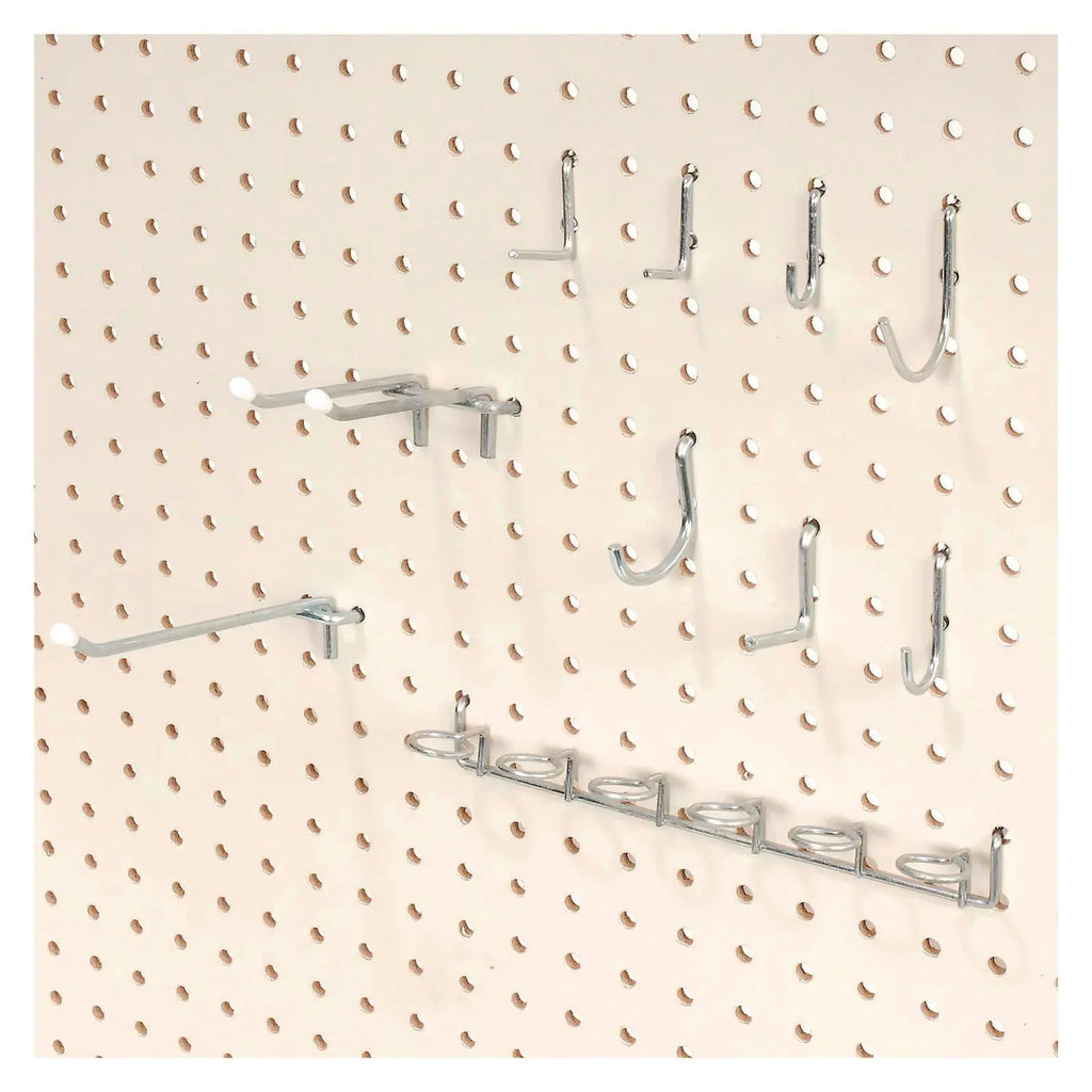 | Package Includes | (2) Tool Rail Hooks; (4) Single-Hook Peg Hooks; (5) Slant Hooks; (4) Double-Hook Peggable-Hook Peg Hooks; (5) Small Curved Hooks; (10) Curved Hooks |