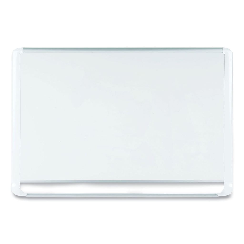 Magnetic Gold Ultra™ dry erase, lacquered steel surface is suitable for frequent use. Sleek, contemporary frame. Full-length aluminum tray.