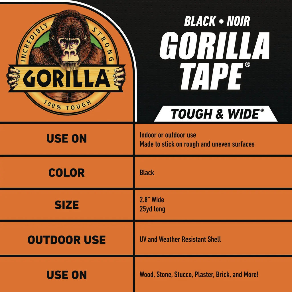 Gorilla tape is three times stronger for a hold that lasts. Made with double-thick adhesive, strong reinforced backing, and a tough all-weather shell, this duct tape is great for projects and repairs both indoors and out. Gorilla tape sticks to smooth, rough and uneven surfaces, including wood, stone, stucco, brick, metal, and vinyl.