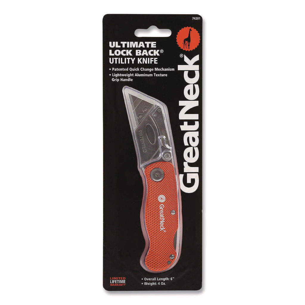 This knife combines the best features of a lock back knife and a utility knife. It opens easily with one hand so you can quickly cut through obstacles such as paper, cardboard and more.